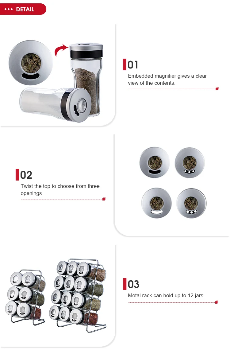 Magnifying lid three choice glass spice jar wholesale