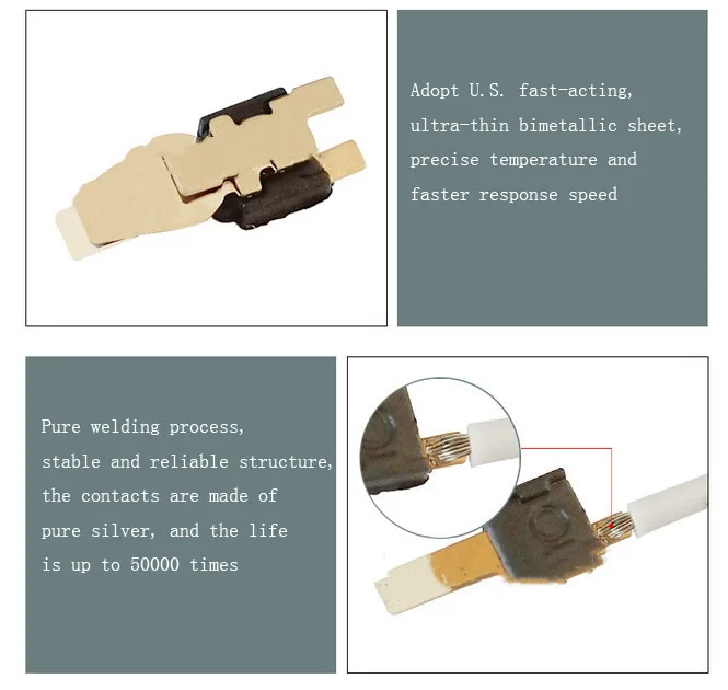 The thermostat is a kind of temperature-sensitive bimetallic disc used as a heat-sensitive reaction component. When the temperature of the main product of the product is increased, the heat generated is transferred to the bimetallic disc. When the operating temperature is set, it will act quickly and act through the mechanism. The contact is opened or closed; when the temperature drops to the reset temperature setting, the bimetallic disc quickly returns to its original state, and the contact is closed or opened to achieve the purpose of connecting or disconnecting the circuit, thereby controlling the circuit.