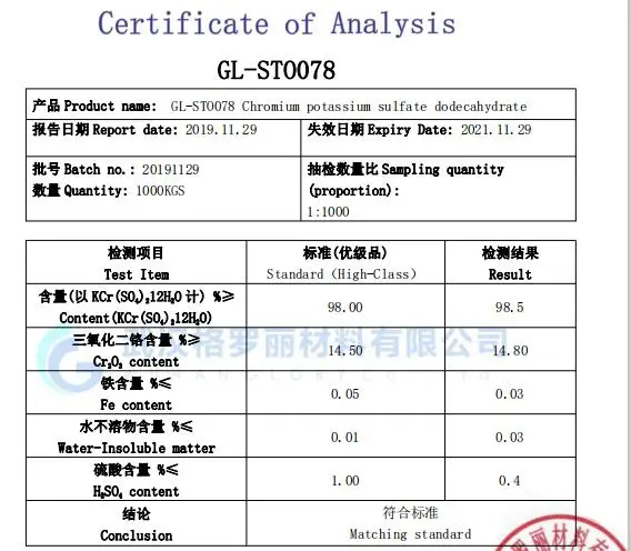 Content(KCr(SO4)212H2O) %≥ | 98.00 | 98.5 |