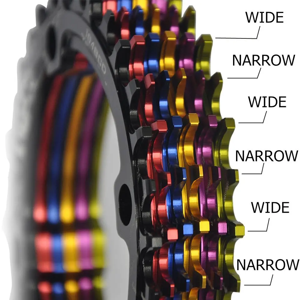 * The narrow wide tooth design, increasing the contact area with the chain greatly,so that each of the teeth can be fully inserted into the chain, increase the grasp force,make you no longer worried about the chain dorpped, easy to pass through the bumpy road.
