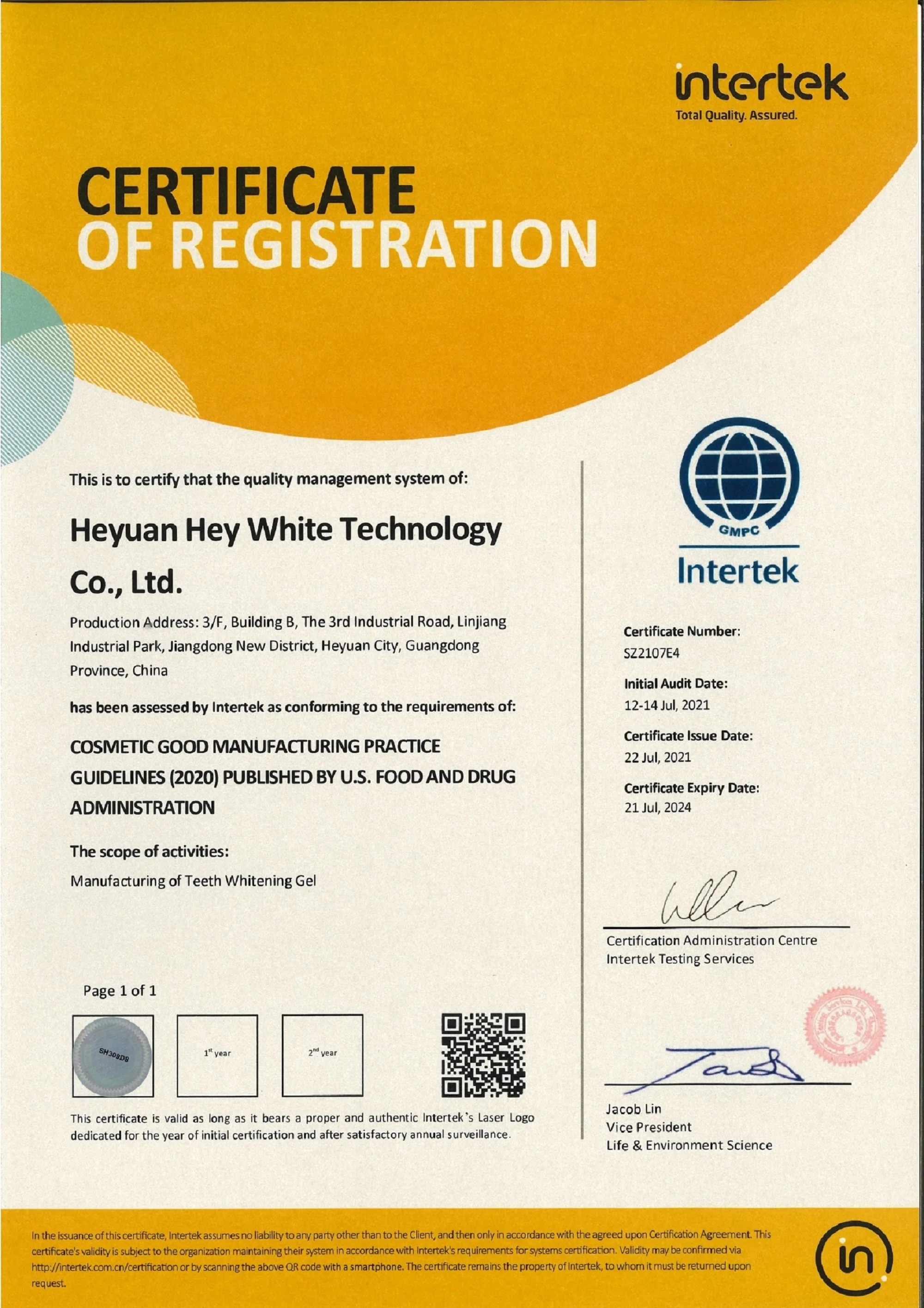 GMP approved: Both for teeth whitening device and teeth whitening gel