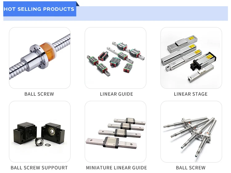 A: Cold rolled ball screws, ball screw support units, Linear guide rails, Linear motion ball slide bearing, Cylinder rails, Linear
