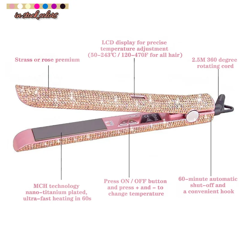 450 degrees crystal hair straightener pink bling diamond 480 digital ceramic irons titanium flat iron with custom private label