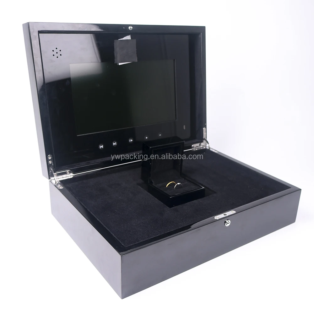 Name: | Custom Black Luxury Big Lacquer Painting Gift Wooden Box with LCD Video Presentation |
