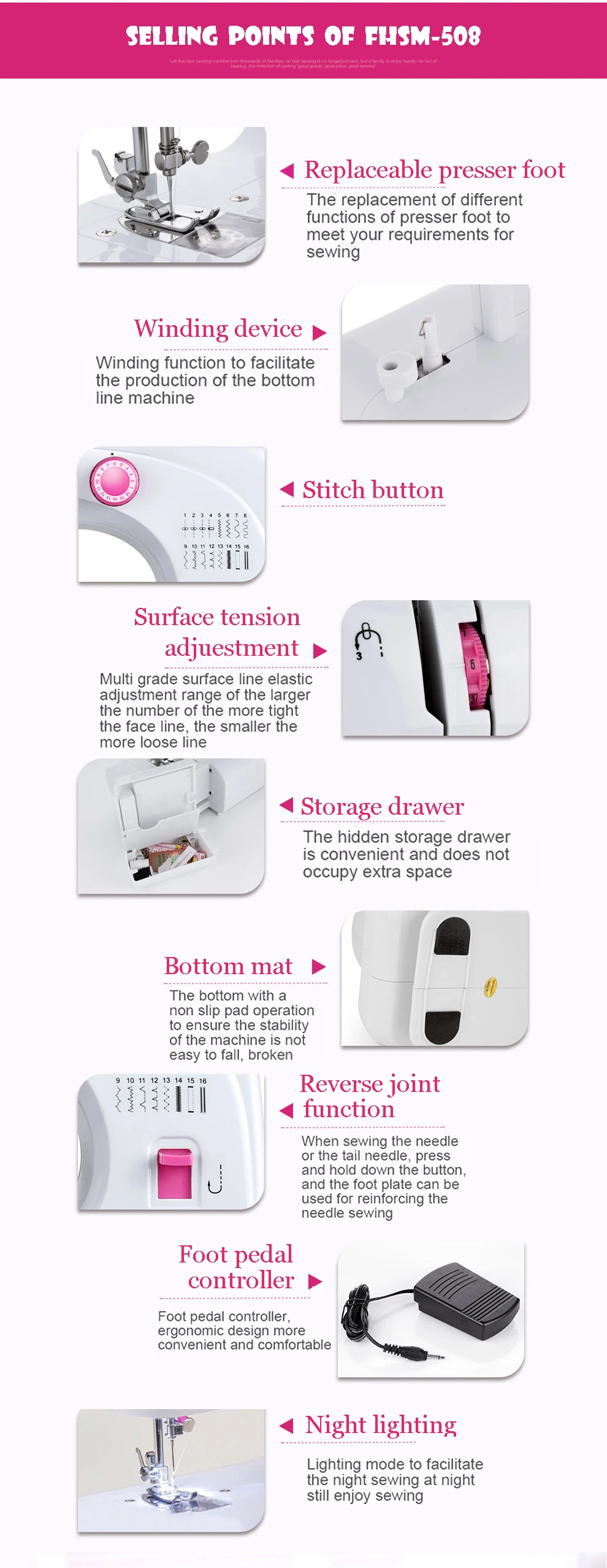 Product name | FHSM-508 wholesale multifunction zigzag Chinese sewing machine |