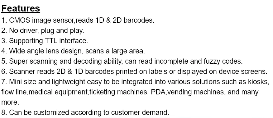 Product Specification | EV-ER008 CMOS Barcode Scanner Module |