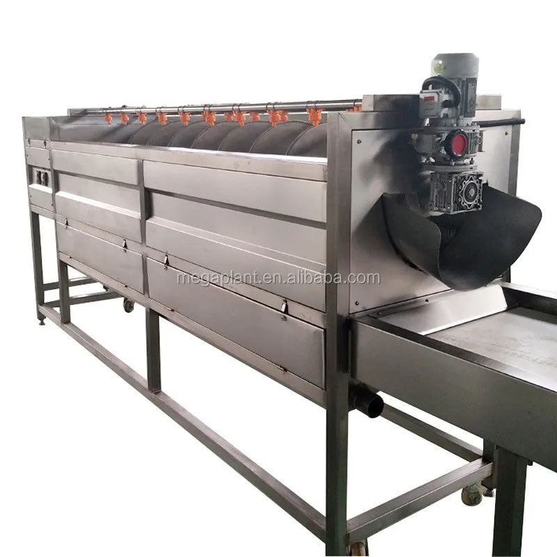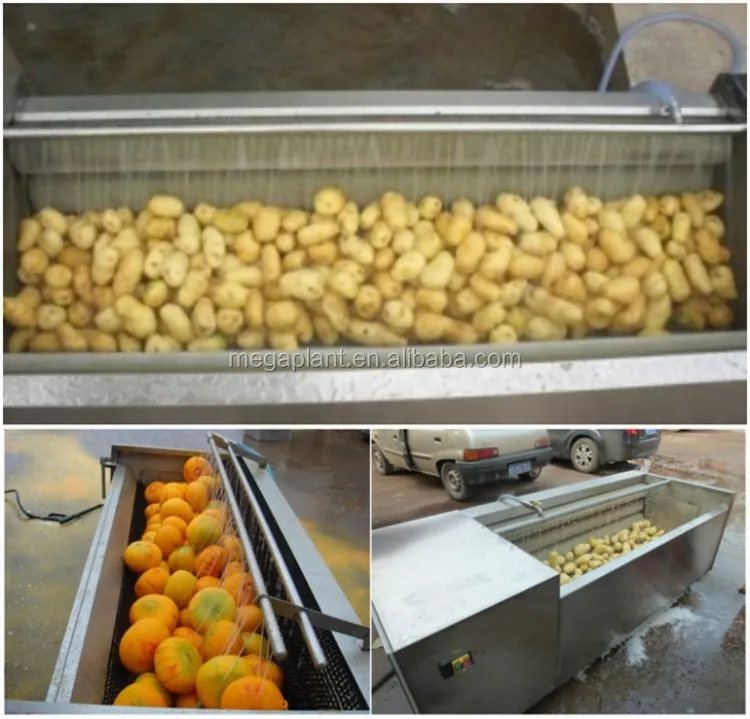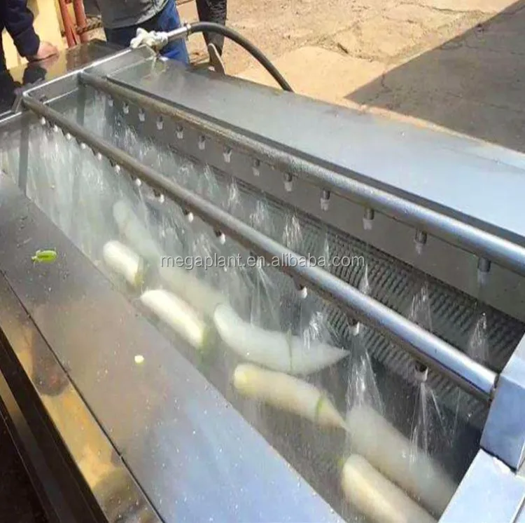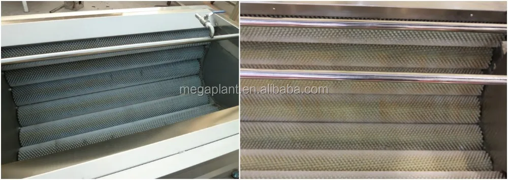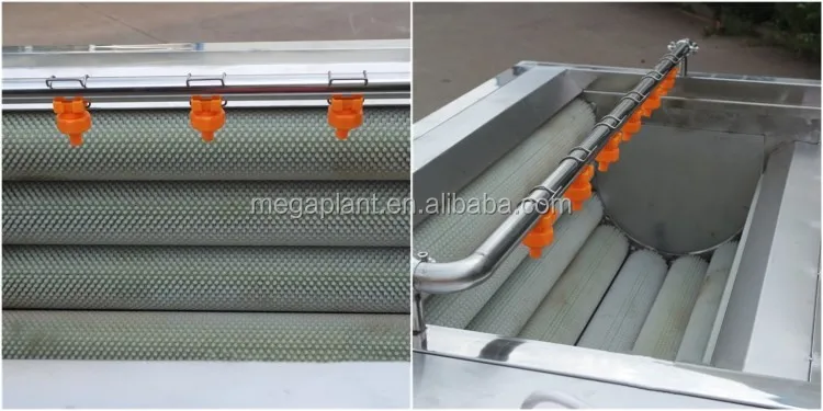 3. Washed by the high pressure water, the dust attached on the surface of vegetables can be cleaned thoroughly, and vegetable skin can be peeled by the rollers and attrition.
