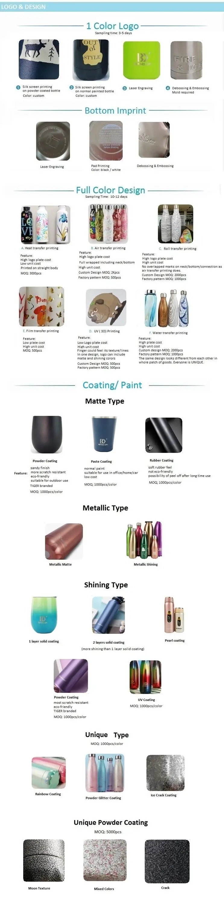 Color / Logo | Customerized: powder coating, metallic/ matte painting, pearl painting etc Logo: paper transfer printing, water transfer printing, UV printing, debossing,embossing, laser engraving, pad printing, silk screen printing, heat transfer printing |