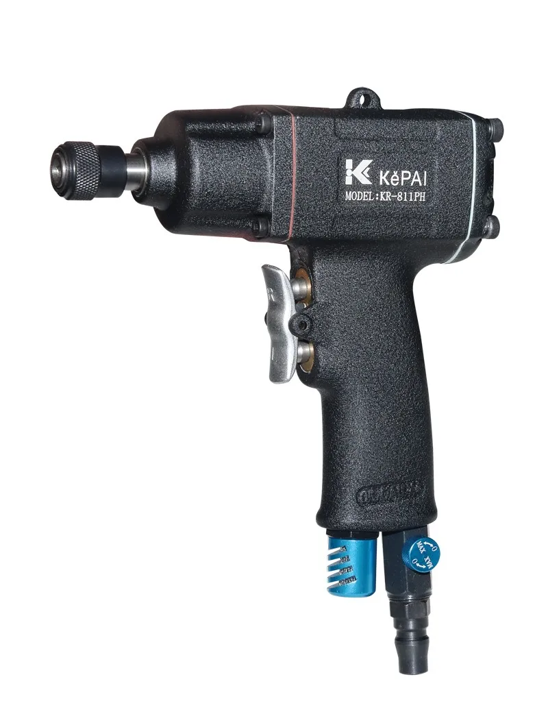 Optional 3/8" spindle; Double hammer structure; High quality bearing is used in motor part; Steady torque output; Adjust air inlet valve to control the torque; Exclusive dseign of switch fit for one hand operation to control the screw from train off to ensure precision and efficiency; Suitable for various industrial assembly lines, specially for automobile and motor cycle assembly lines.