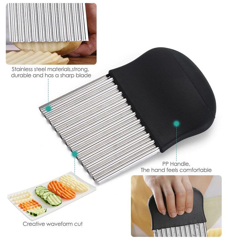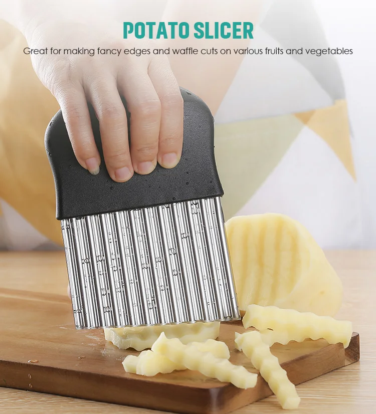 Нержавеющая сталь ручной картошка фри резак картофельных чипсов луковый слайсер Crinkle резак с волнистыми бортиками нож