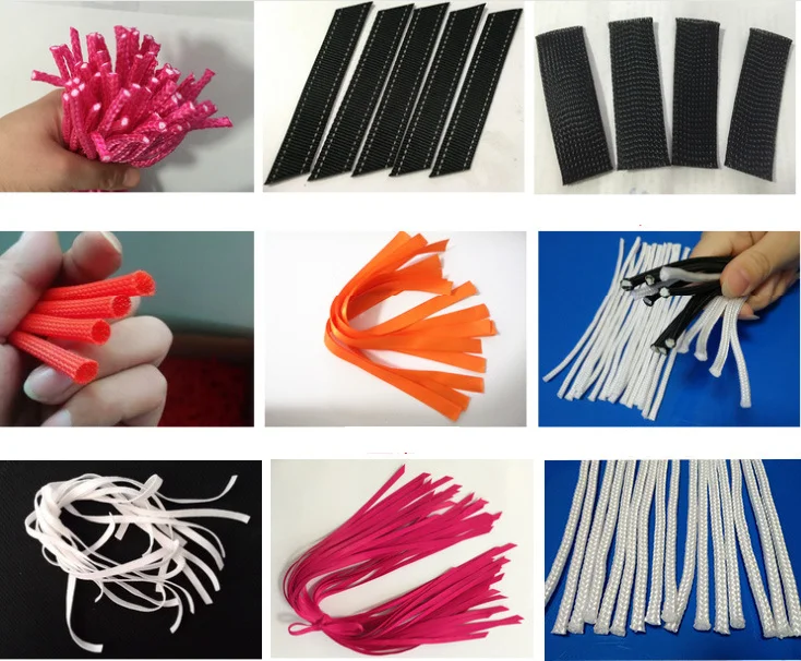 Can cut materials: Woven belt, color ribbon, backpack belt, shoelaces, zippers, nylon, webbing belt, strap, cotton, tape, trape, tape, ribbon material into sheet,and other nylon material.