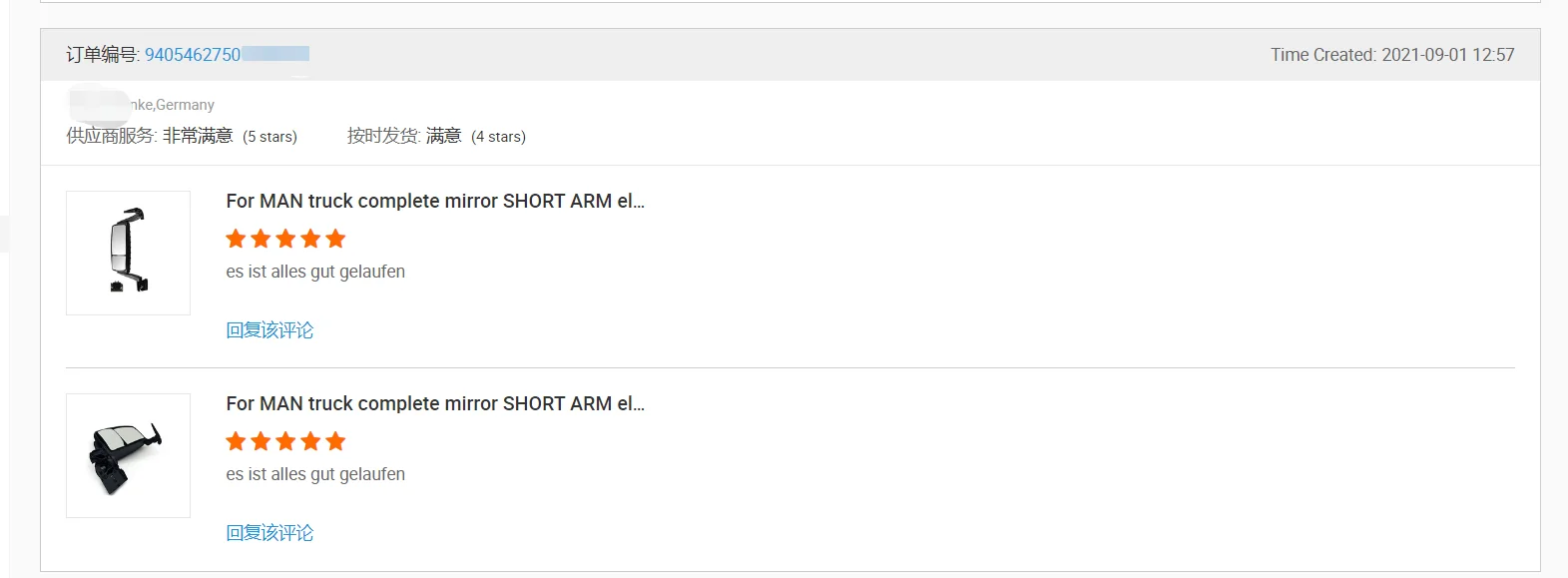 1. Some truck parts have stock, and available stock can be delivered immediately after order confirmation;