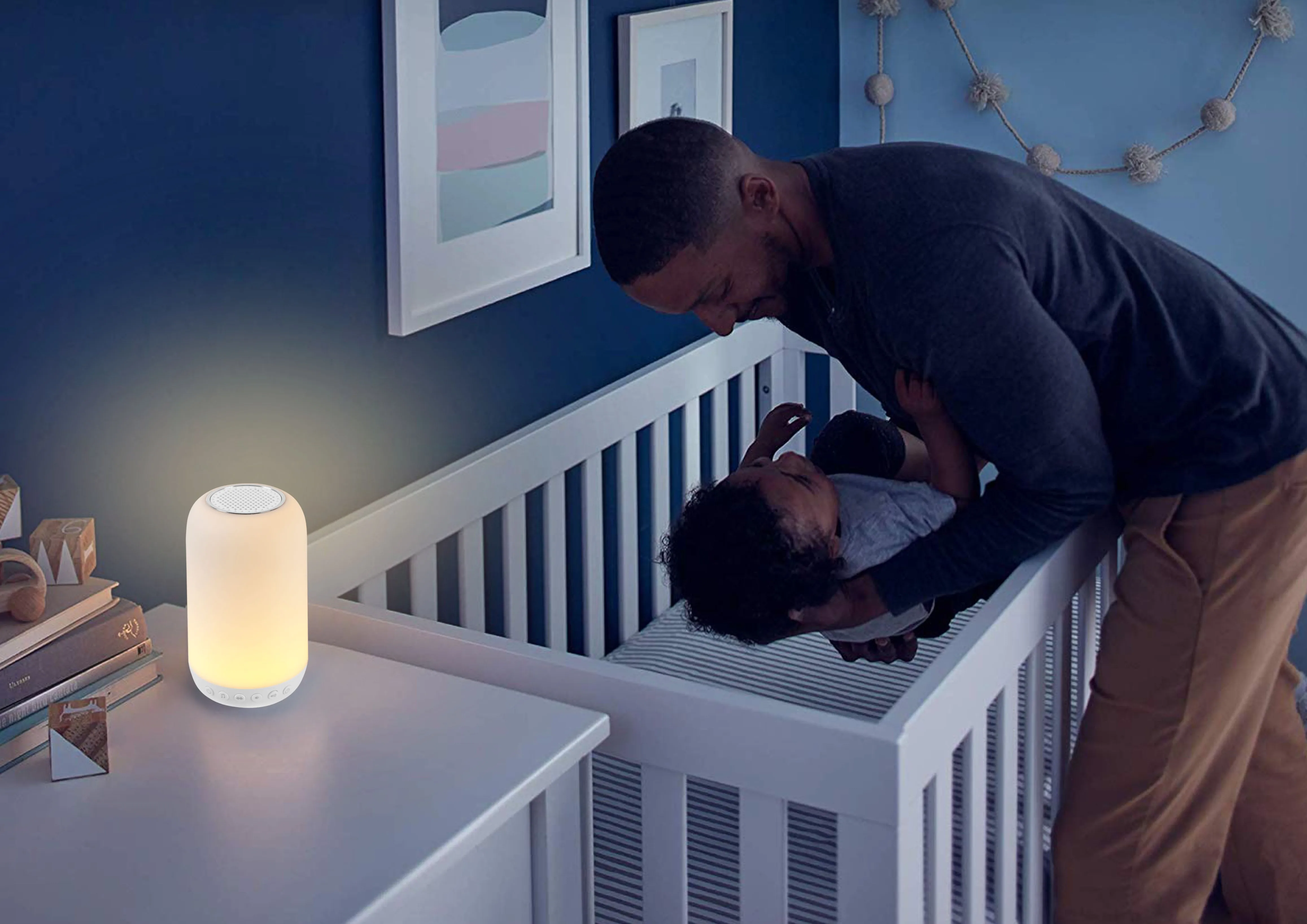 function | night light, white noise, lullaby music |