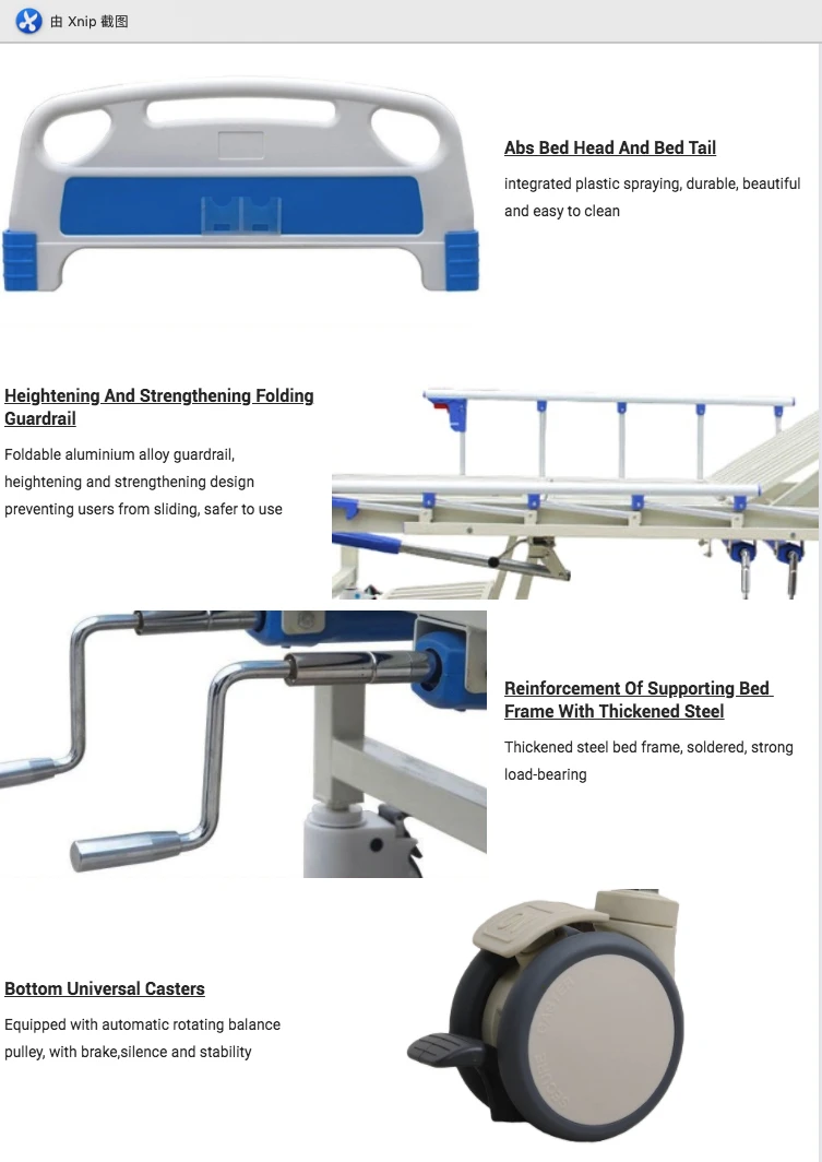 l Optional: overbed table(abs), mattress (8cm), one ABS cabinet with 2.5” castor.