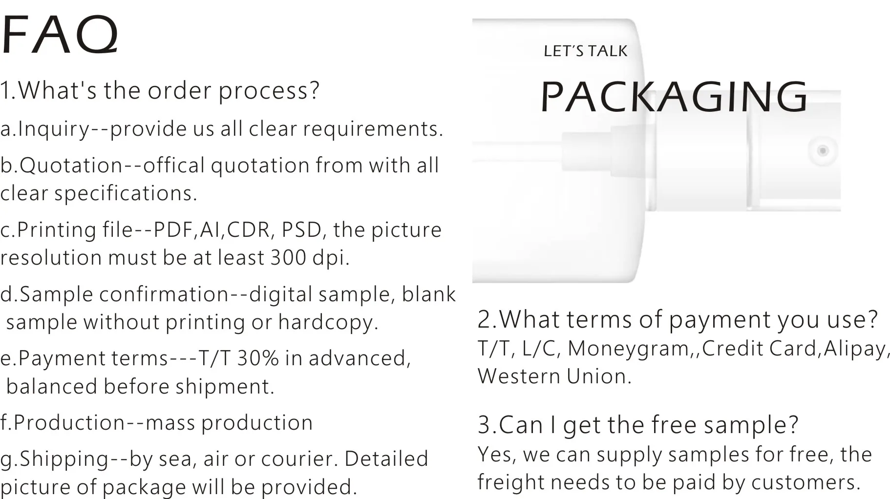 MOQ: | (1) 1,00pcs when have stock (2) 2,000 pcs when need mass production or open new mould |