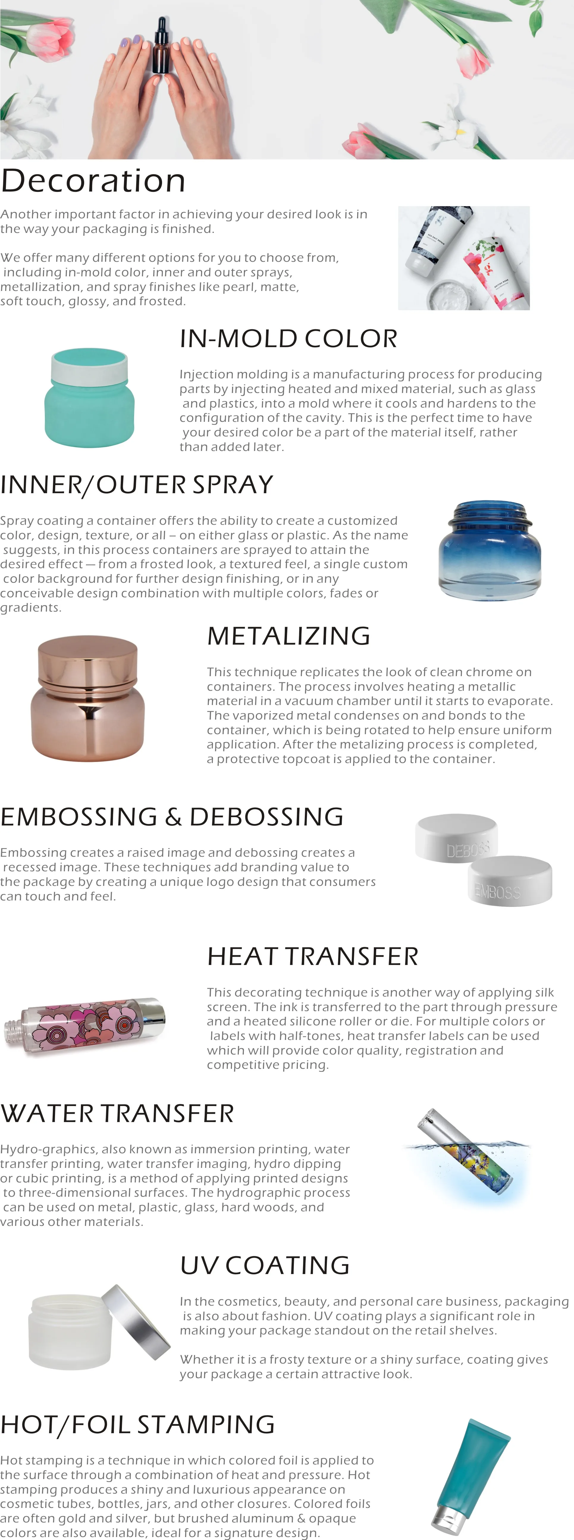 Surface Handling: | Hot stamping, Electroplating, Silk screen printing , Spray painting ,E frosting , Decal , Label etc. |