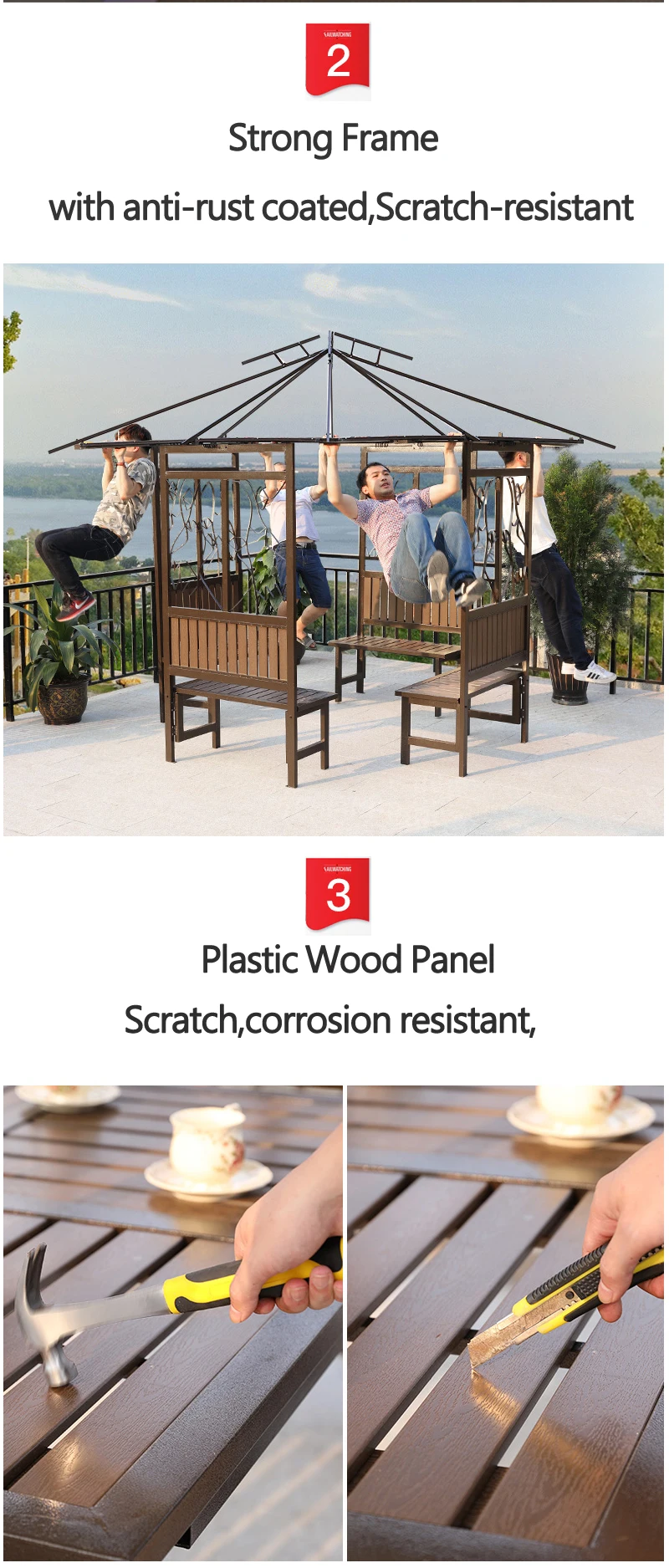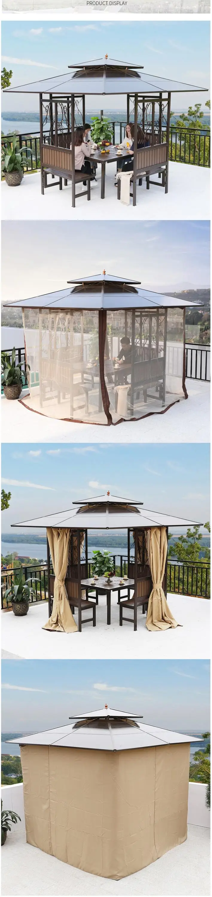 This gazebo garden pavilion can provide you with a comfortable environment to make your party or leisure time more perfect.