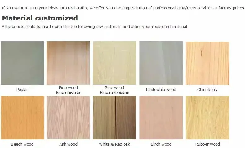 Type of wood | pine, rubber wood, birch, cherry, maple, oak, walnut, paulownia |