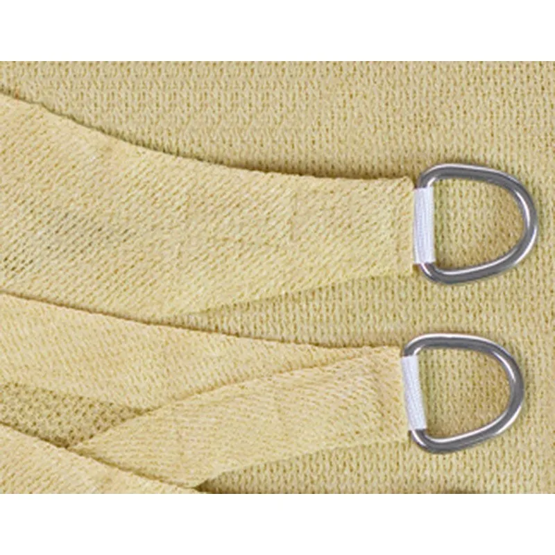 Knitted shade sail allow cool air to pass through and hot air to escape,giving you a refreshing and comfortable place to sit outside.even on a hot day.Whilst not as weather resistant as our waterproof sail shades,knitted sails are ideal if you would rather keep cool.Provide 95% protection against UV rays(UPF 15).Commercially knitted polymer weave-extremely strong,durable fabric.Breathable fabric,comfortable to sit under in heat.Rot and mould proof.Quality grade 304 stainless steel D rings or Triangle rings on each comer.