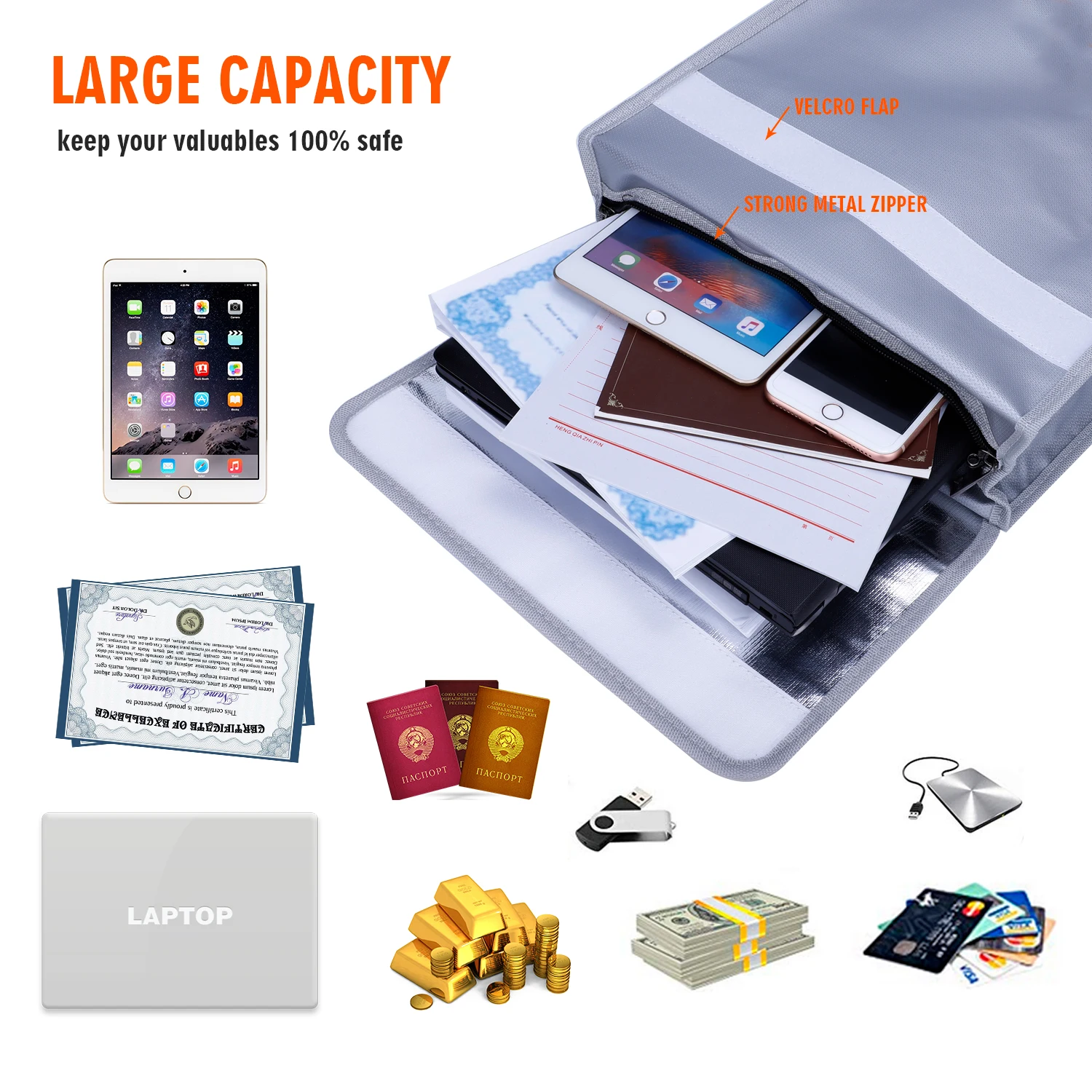 Сумка для документов OEM/ODM отличного качества огнестойкая сумка хранения денег дома водонепроницаемая с