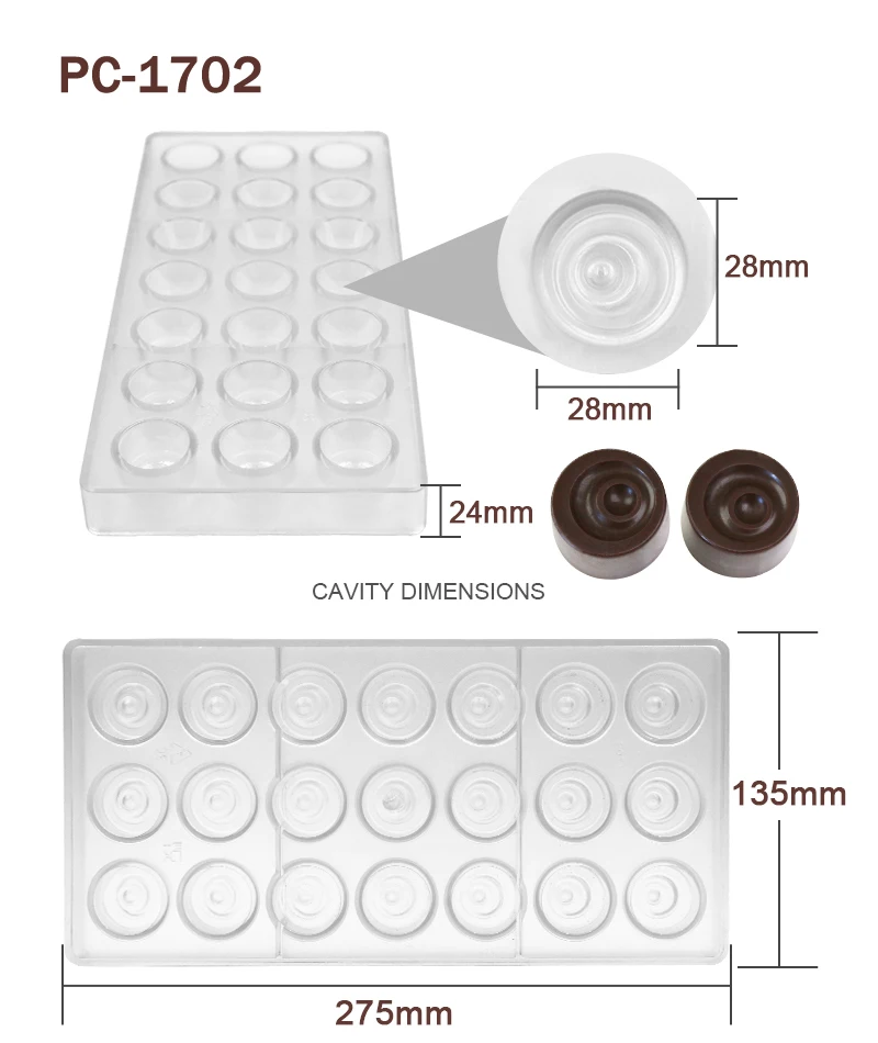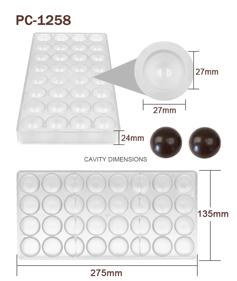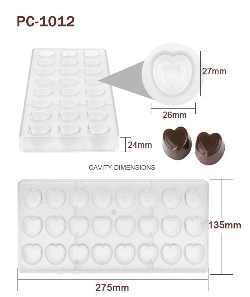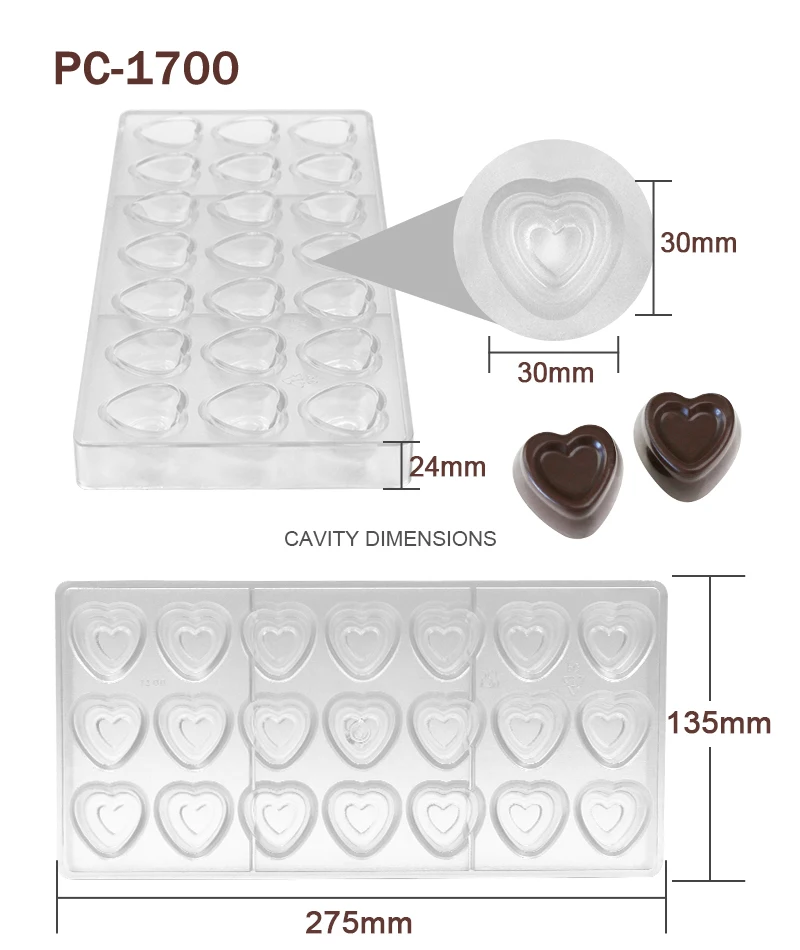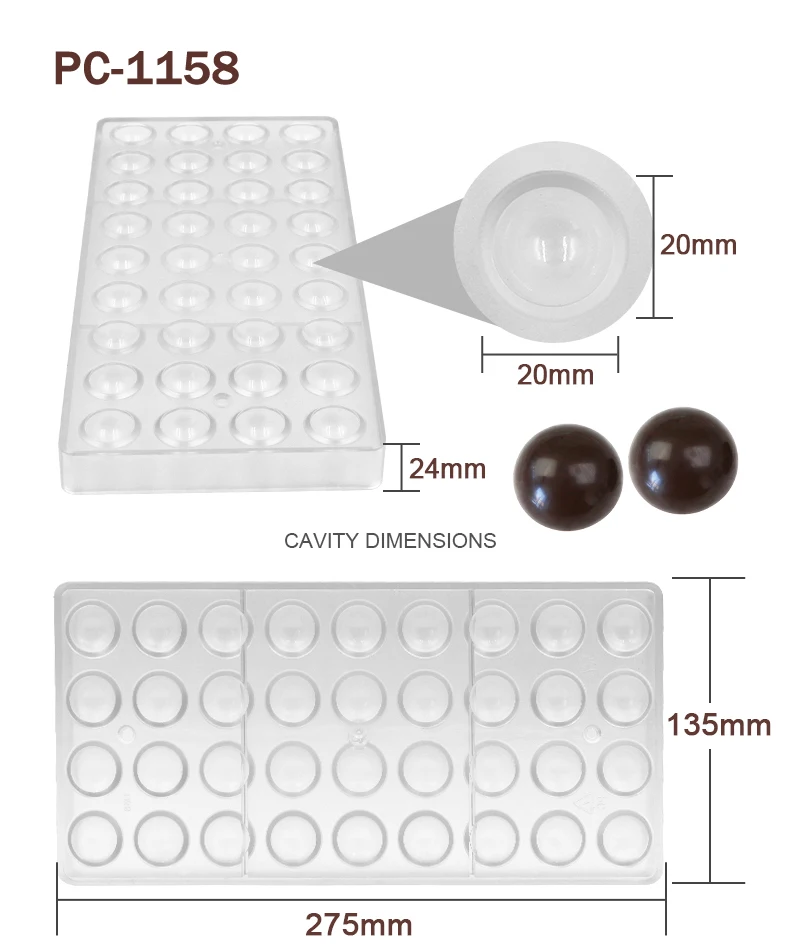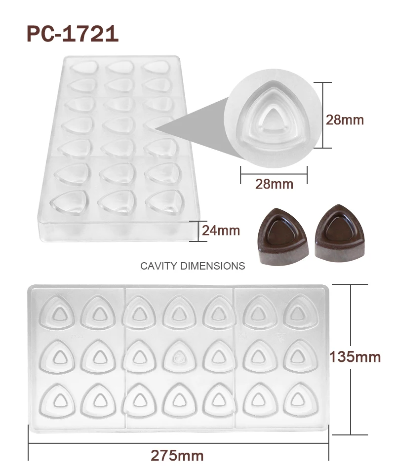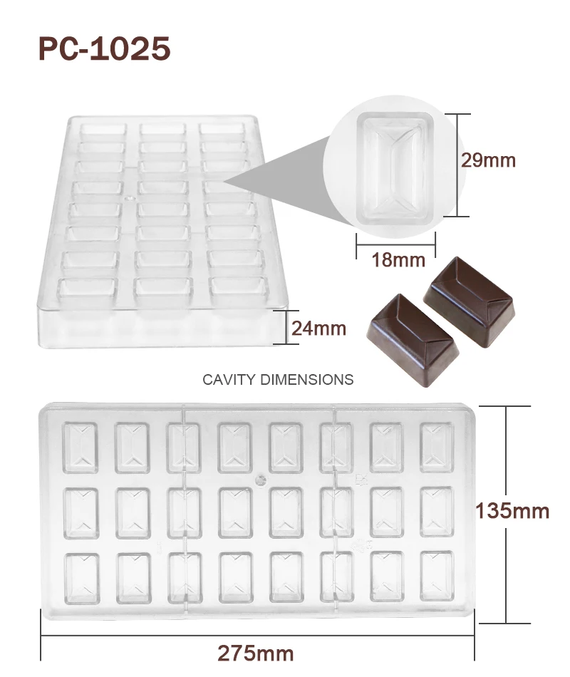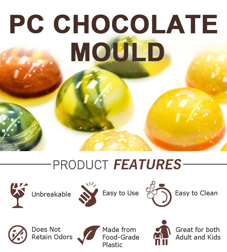 Advantage | High quality BPA free polycarbonate, green product, innoxious, safe Easy to release, sturdy to use, quick to clean Great for making chocolate and candy |