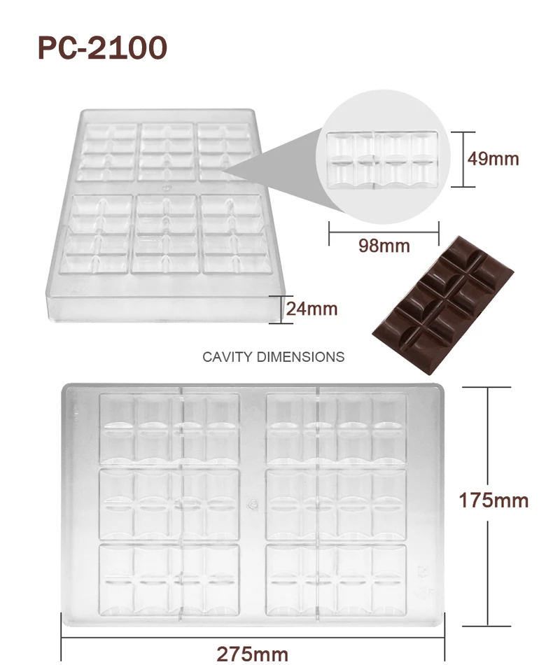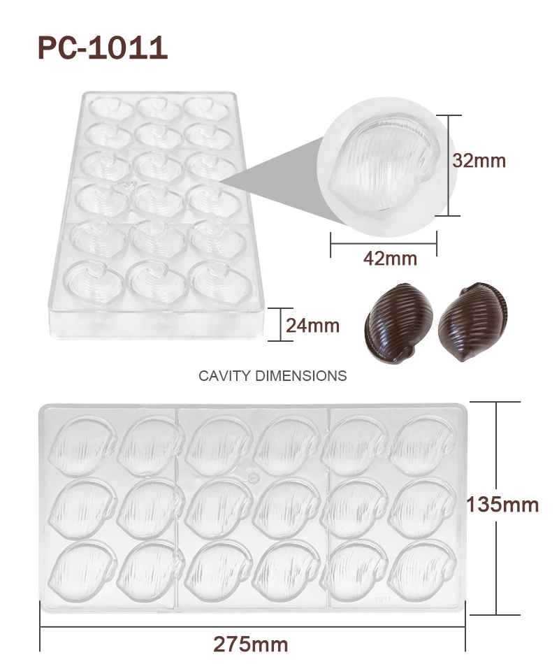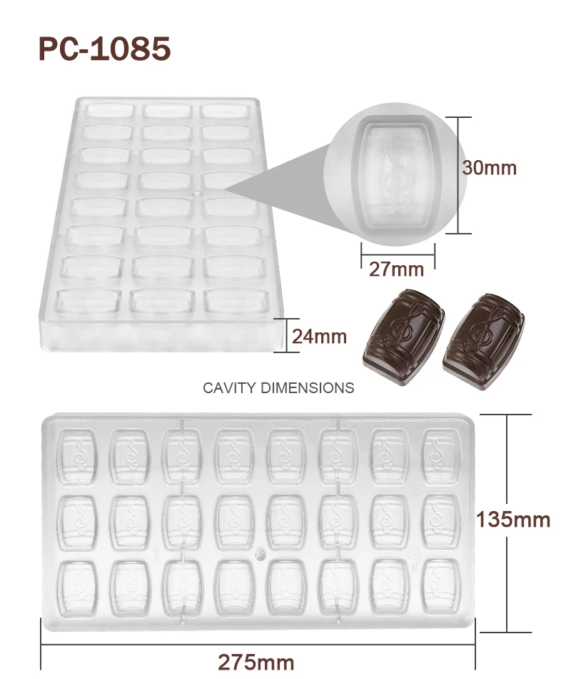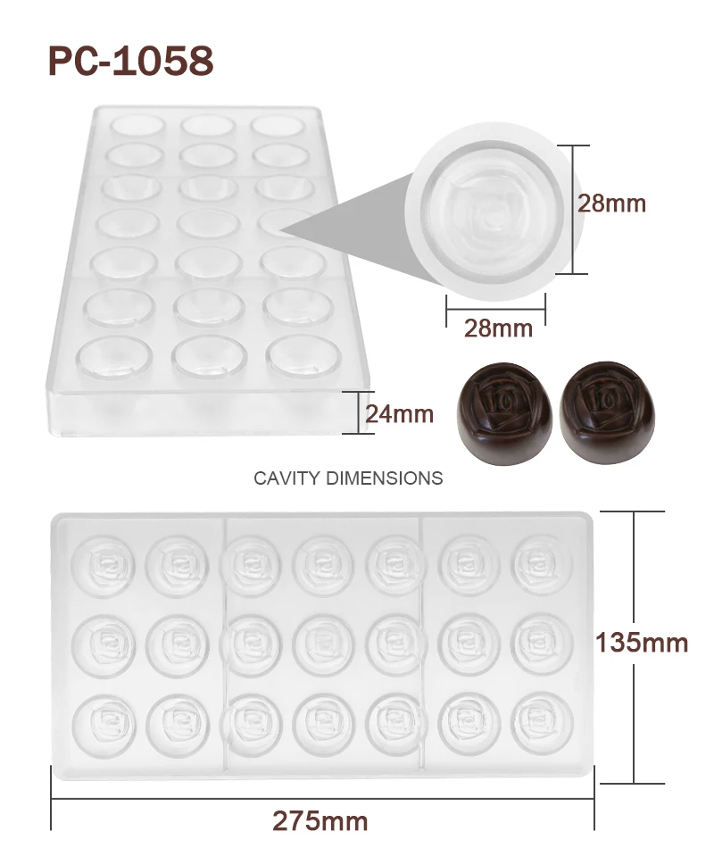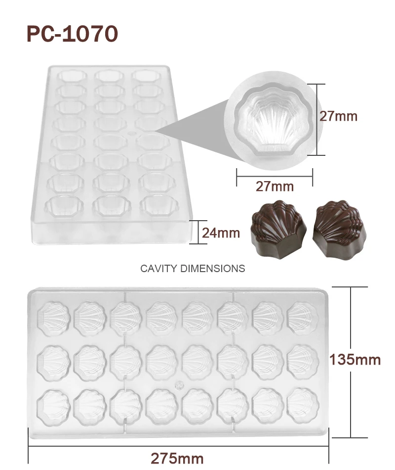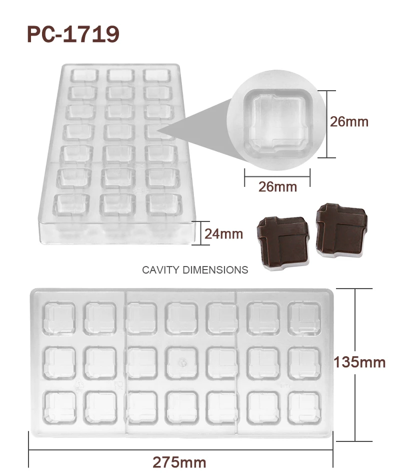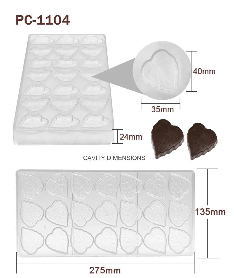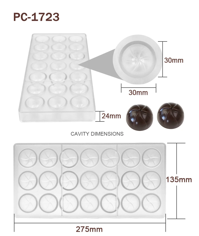 Advantage | High quality BPA free polycarbonate, green product, innoxious, safe Easy to release, sturdy to use, quick to clean Great for making chocolate and candy |