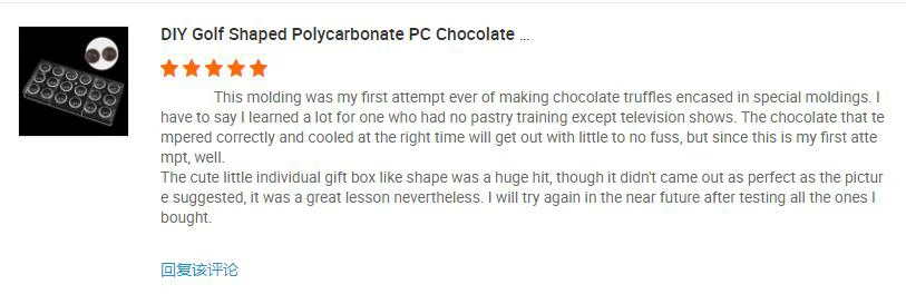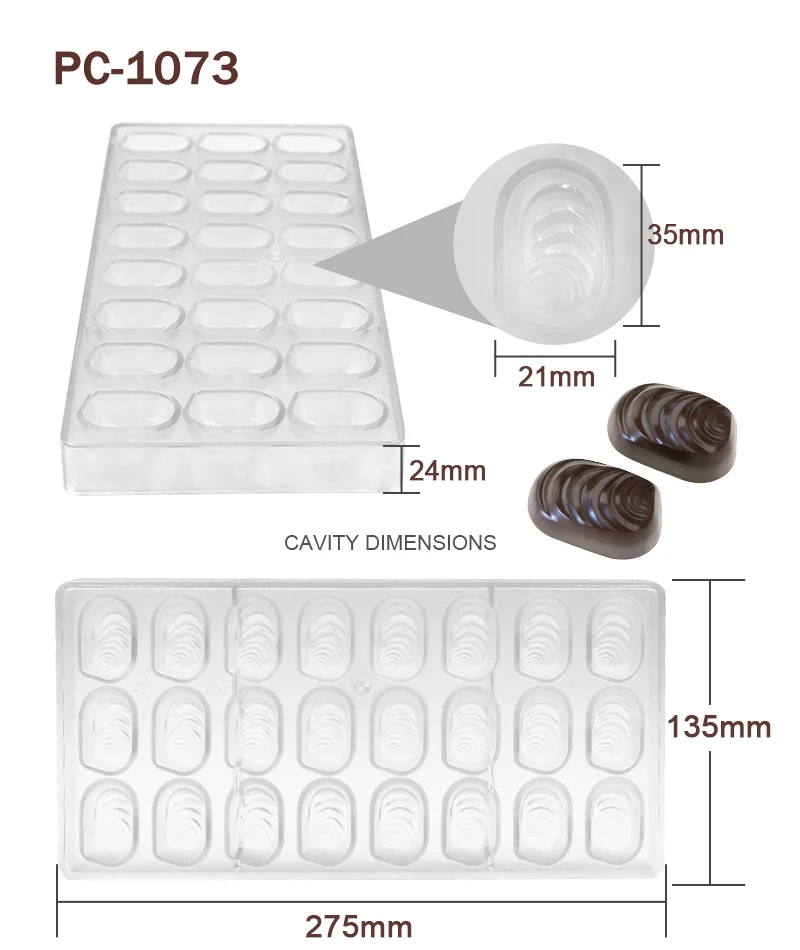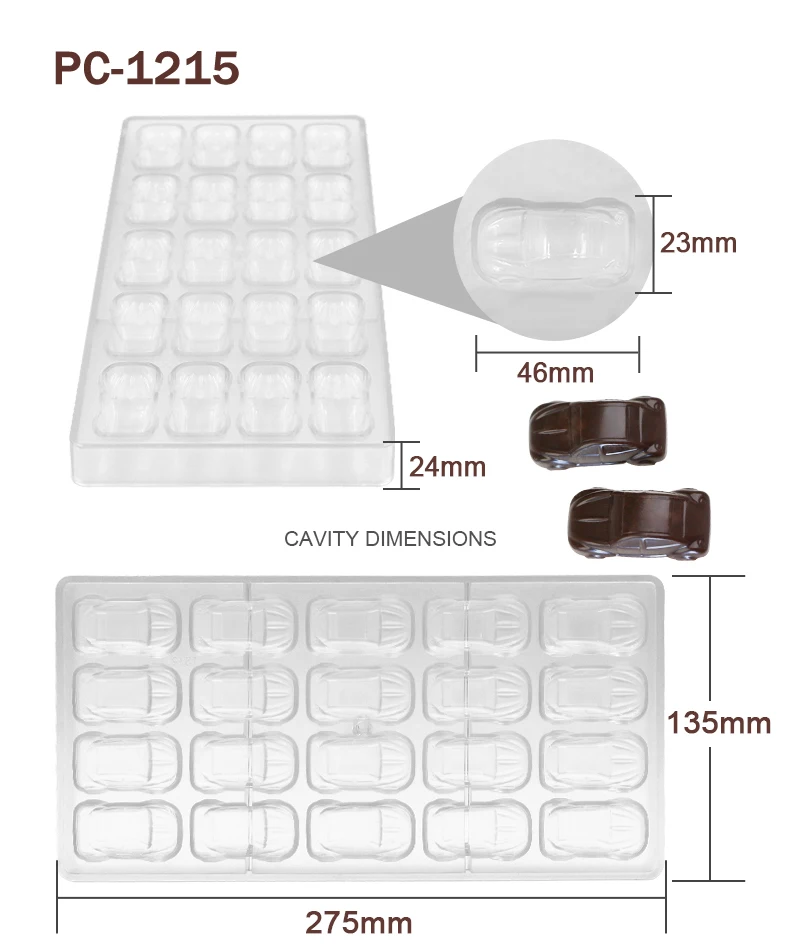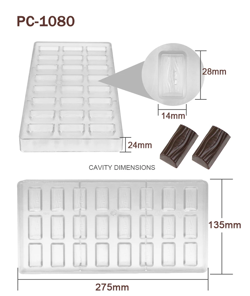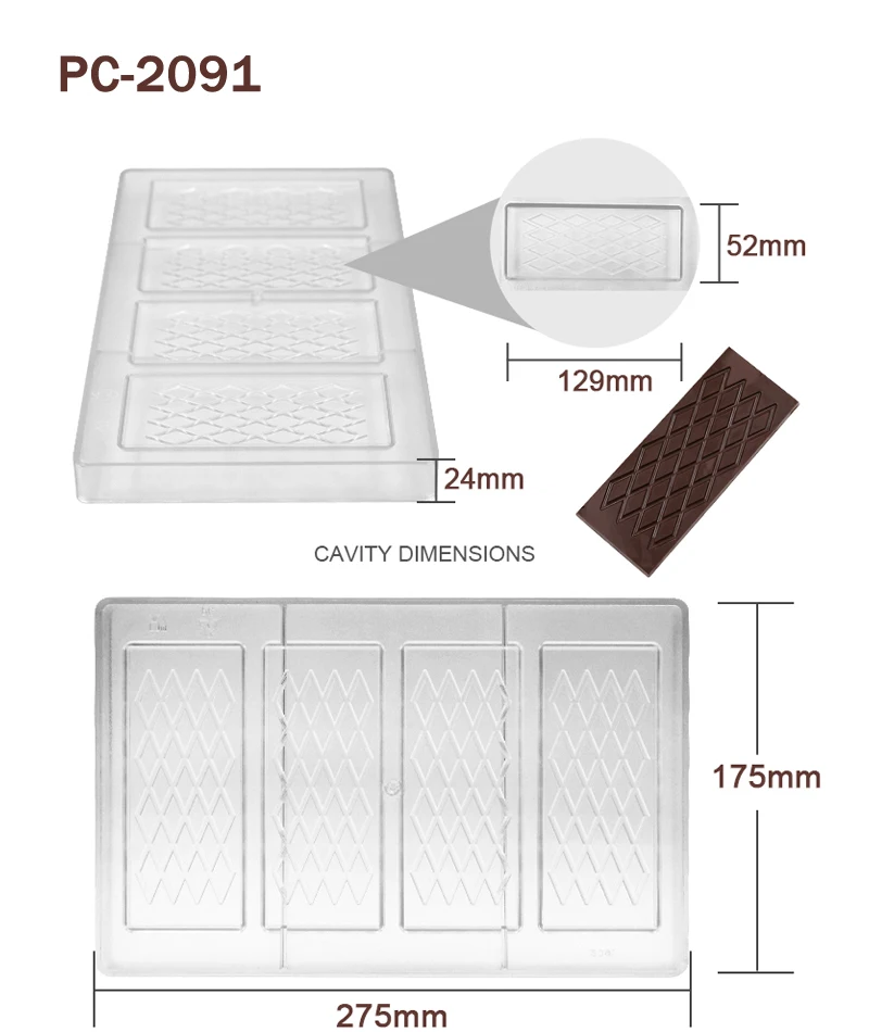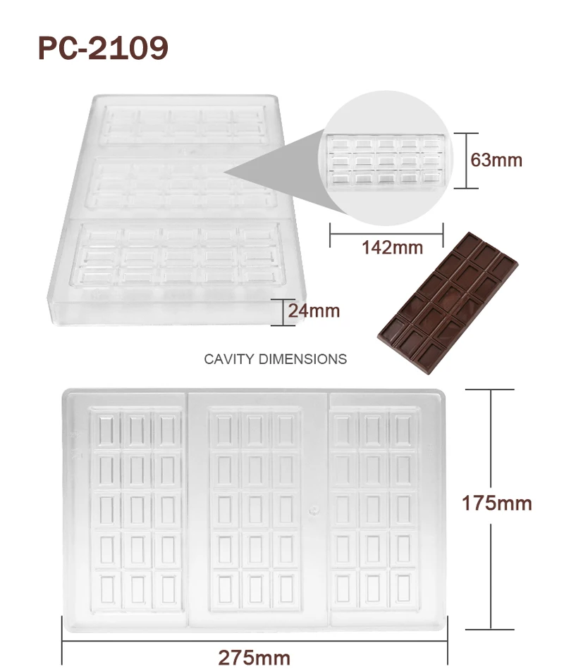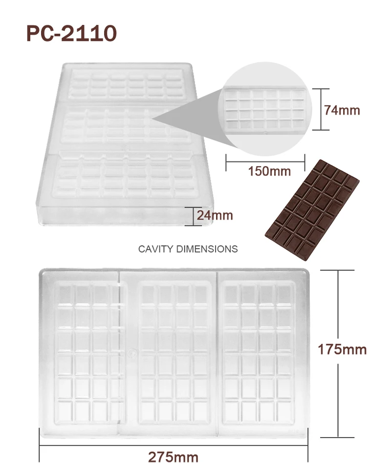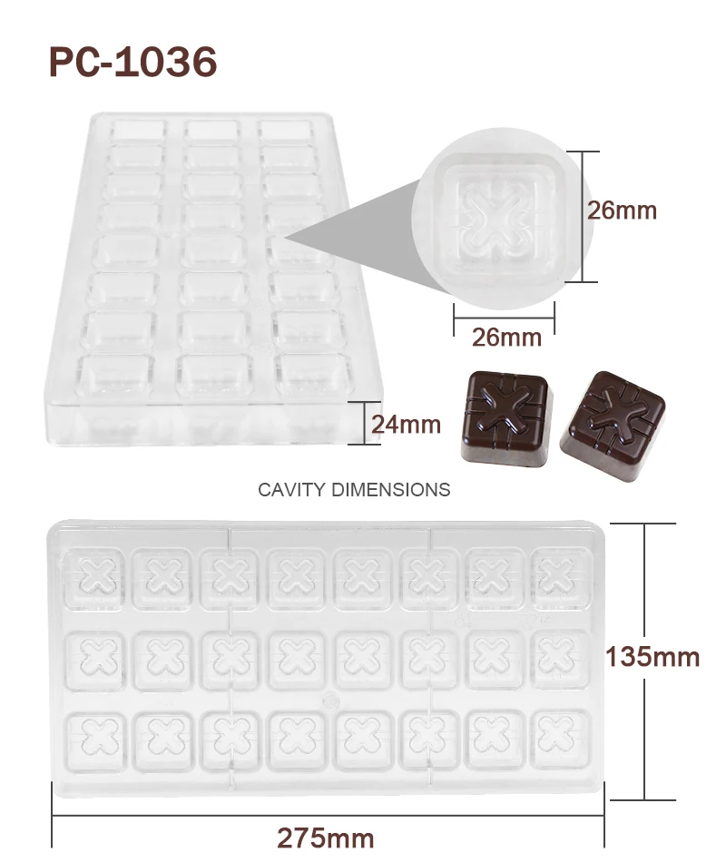 Advantage | High quality BPA free polycarbonate, green product, innoxious, safe Easy to release, sturdy to use, quick to clean Great for making chocolate and candy |