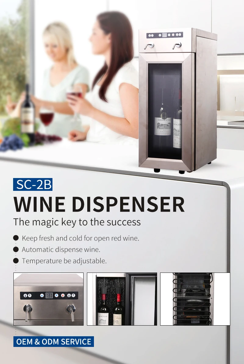 Product Description: 1.Cooling by compressor 2.Keep wine freshness and cooling 3.Digital display & push button controls 4.With interior lights 5.Dispensing spouts&removeable top tray 6.Stainless steel spouts. 7.External pressure gage 8.With inflating valve 9.Adjustable reducing valve. 10.Rechargeable gas cartridge |