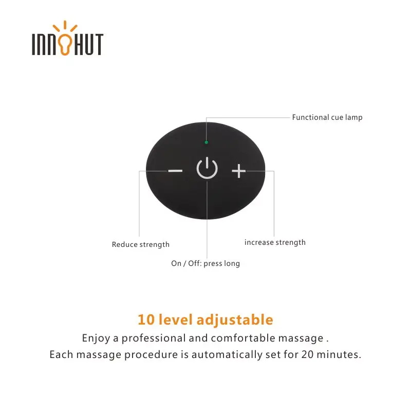 •✓ Multi-functional: 6 massage actions with intensity from 1 to 10. Buttons are clearly labelled with words like "m", "+", "-" to easily change the mode and intensity.