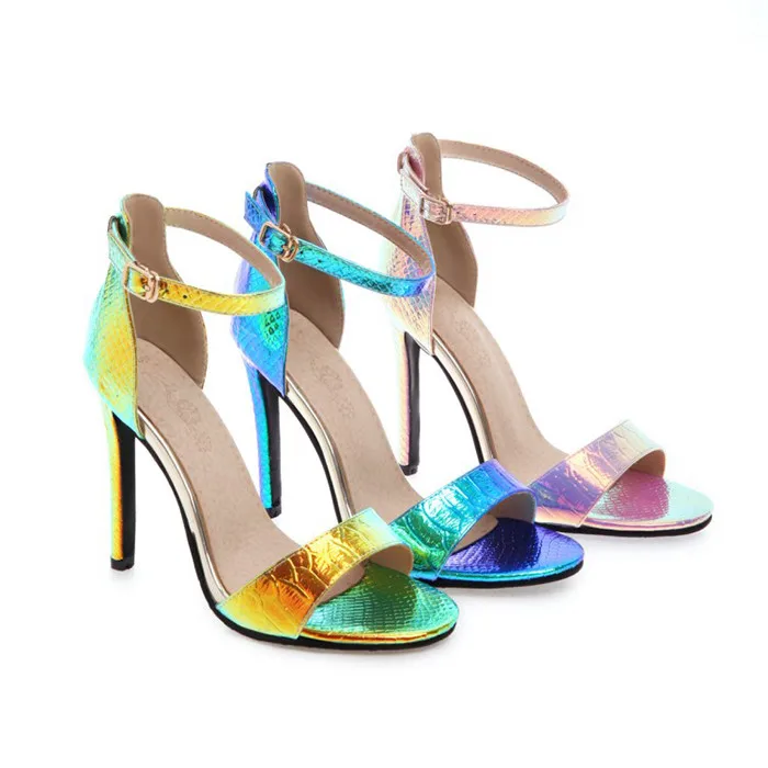 Product Name | 2019 Summer PU European And American Style Heels One-line Buckle With Color Shoes Metal Decorative Open Toe Fashion Wild Sandals |