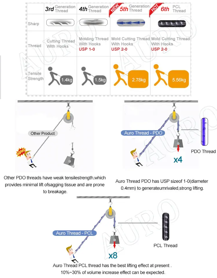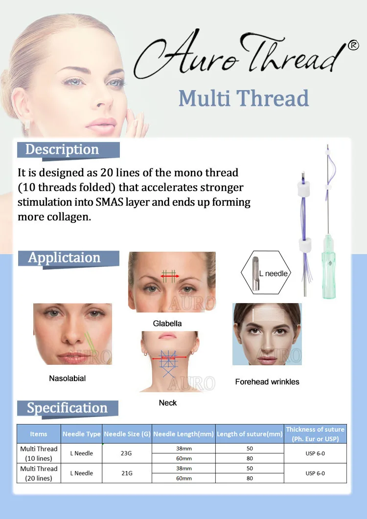 Auro Thread Lift is the latest and revolutionary treatment for skin tightening and lifting as well as V-line lifting.It is made of PDO (Polydioxanone) material so naturally absorb in the skin and continuously stimulate collagen aynthesis.