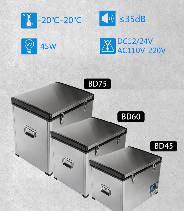 ❄AC100-240V,50-60Hz, DC12V / 24V ❄DC compressor refrigerator, AC to DC adaptor included. ❄3.5 meter DC power cable included. ❄Electronic control, LED display.Fully insulated body. ❄Anti-vibration design. Anti-leakage inner tank. ❄Twin cabinets , two temperature controller