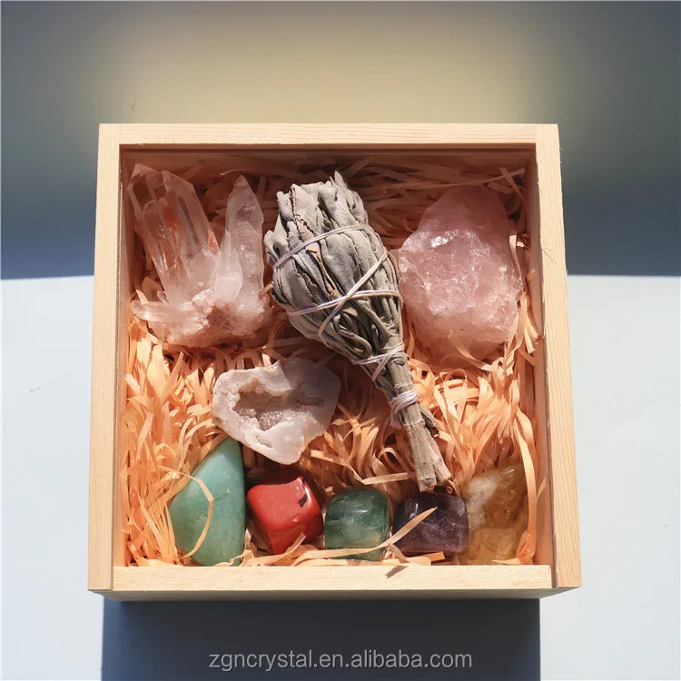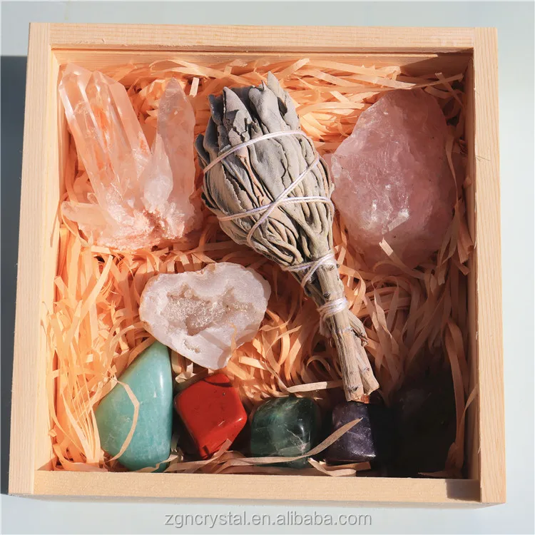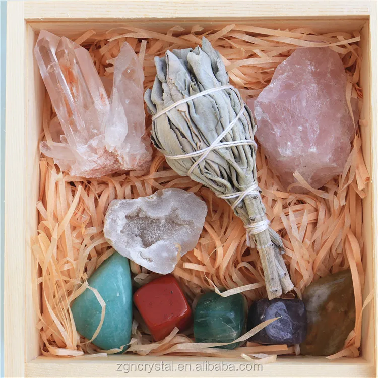 Material | Natural Crystals Healing Stones Including Clear Crystal Cluster,Smudge Sage ,Rose Quartz Rough,Geode,Amazonite ,Red Jasper; Green Fluorite,Lepidolite,Citrine |
