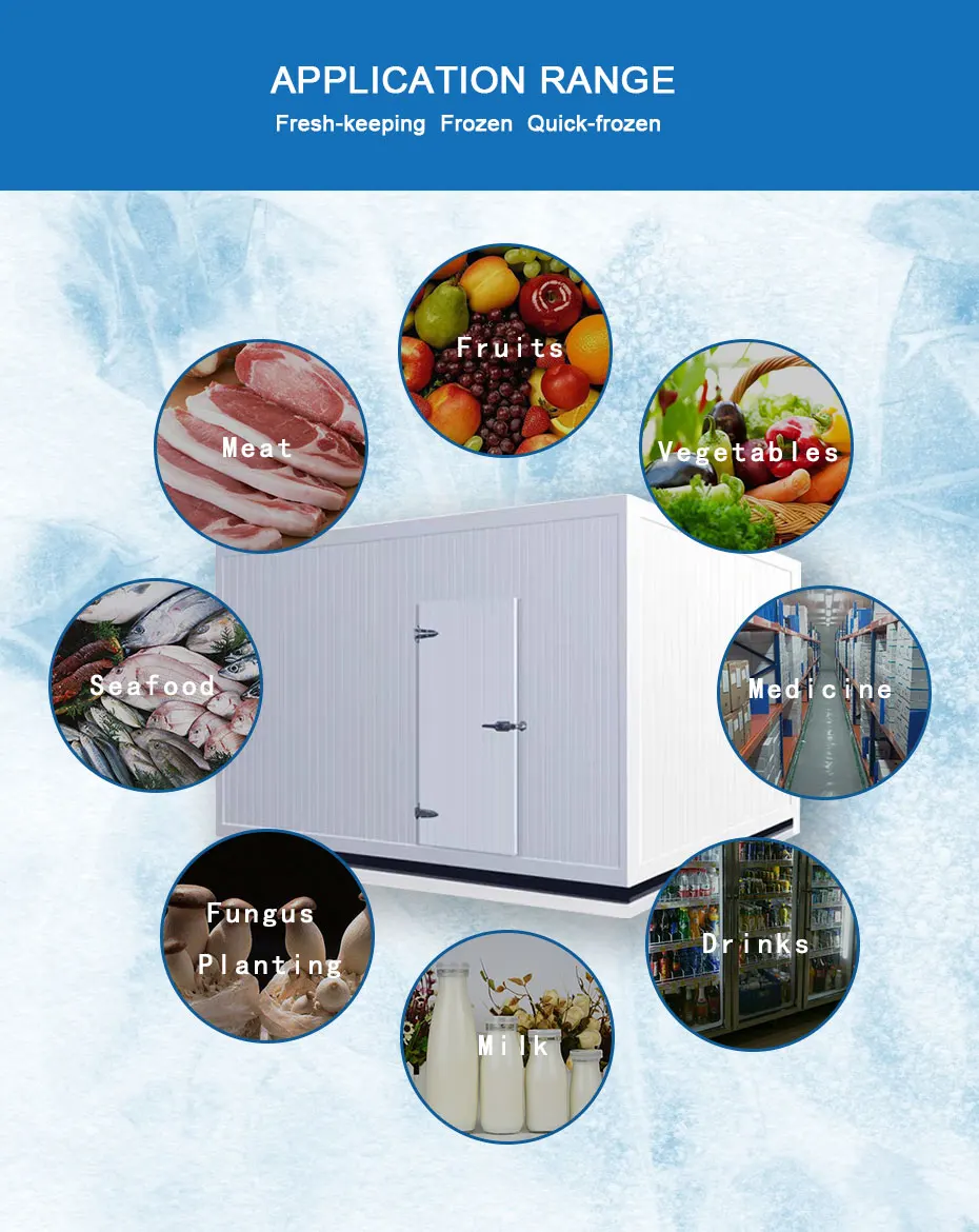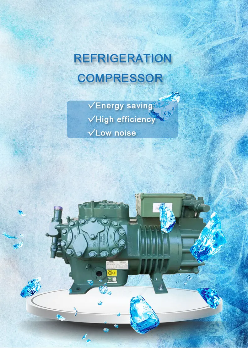 6. Wide range of applications: compressors are divided into medium and high temperature types and low temperature types, high temperature type evaporation temperature can reach 12.5 ℃, low temperature type single stage compressor evaporation temperature can reach (R22) -40 ℃, double stage compressor The evaporation temperature can reach (R22) -50 ℃. If R404a or R507 is used, the evaporation temperature will be lower, up to -70 ℃.