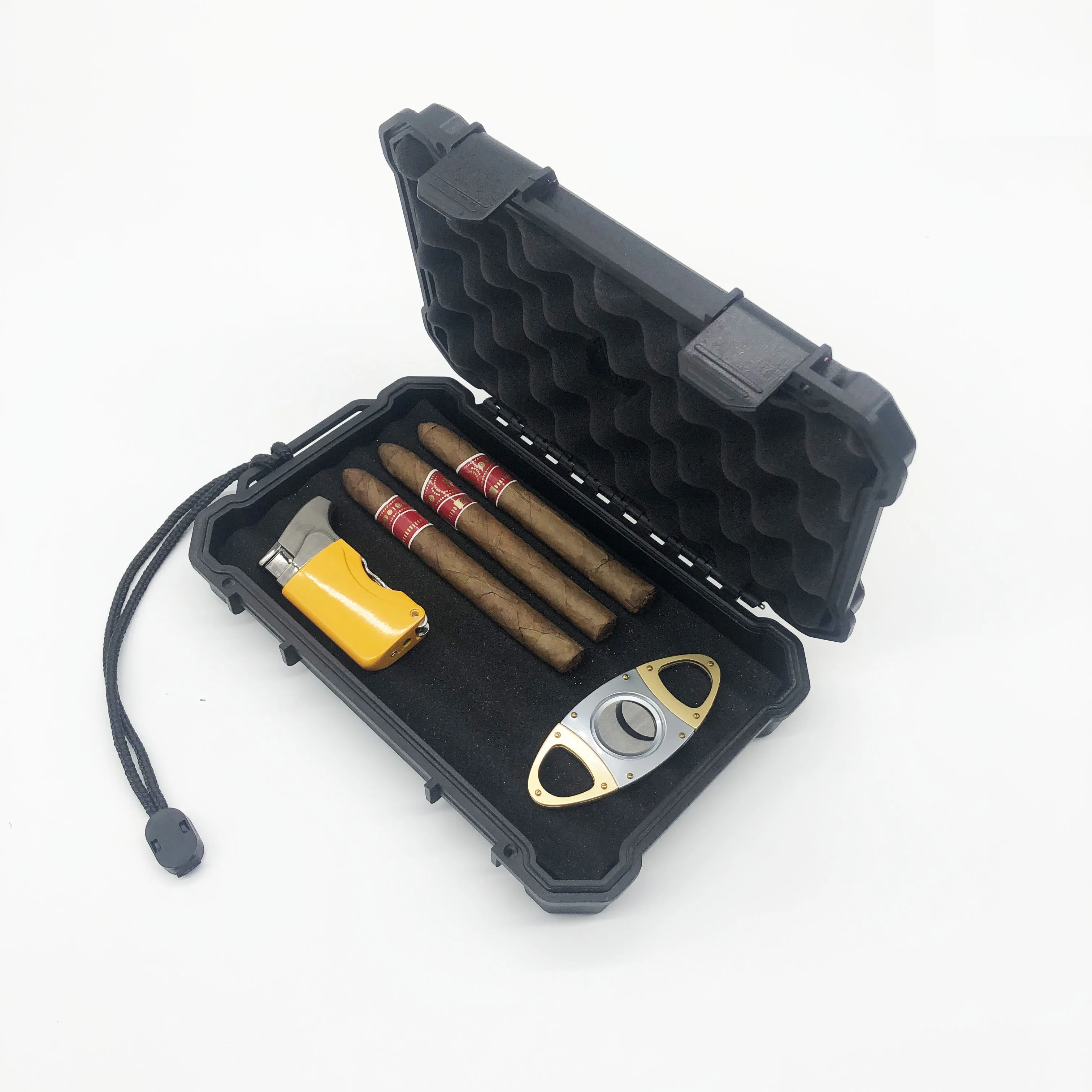 The price includes: Foam: Foam & humidor in the lid cigar foam in the bottom *3 pieces Handle: Lanyard handle Logo: LOGO Sticker in the lid All the above accessories and the color of the box can be customized! | |