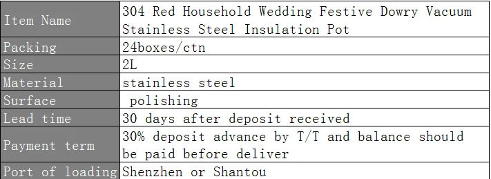 304 красный домашний Свадебный Праздничный вакуумный изоляционный горшок из нержавеющей