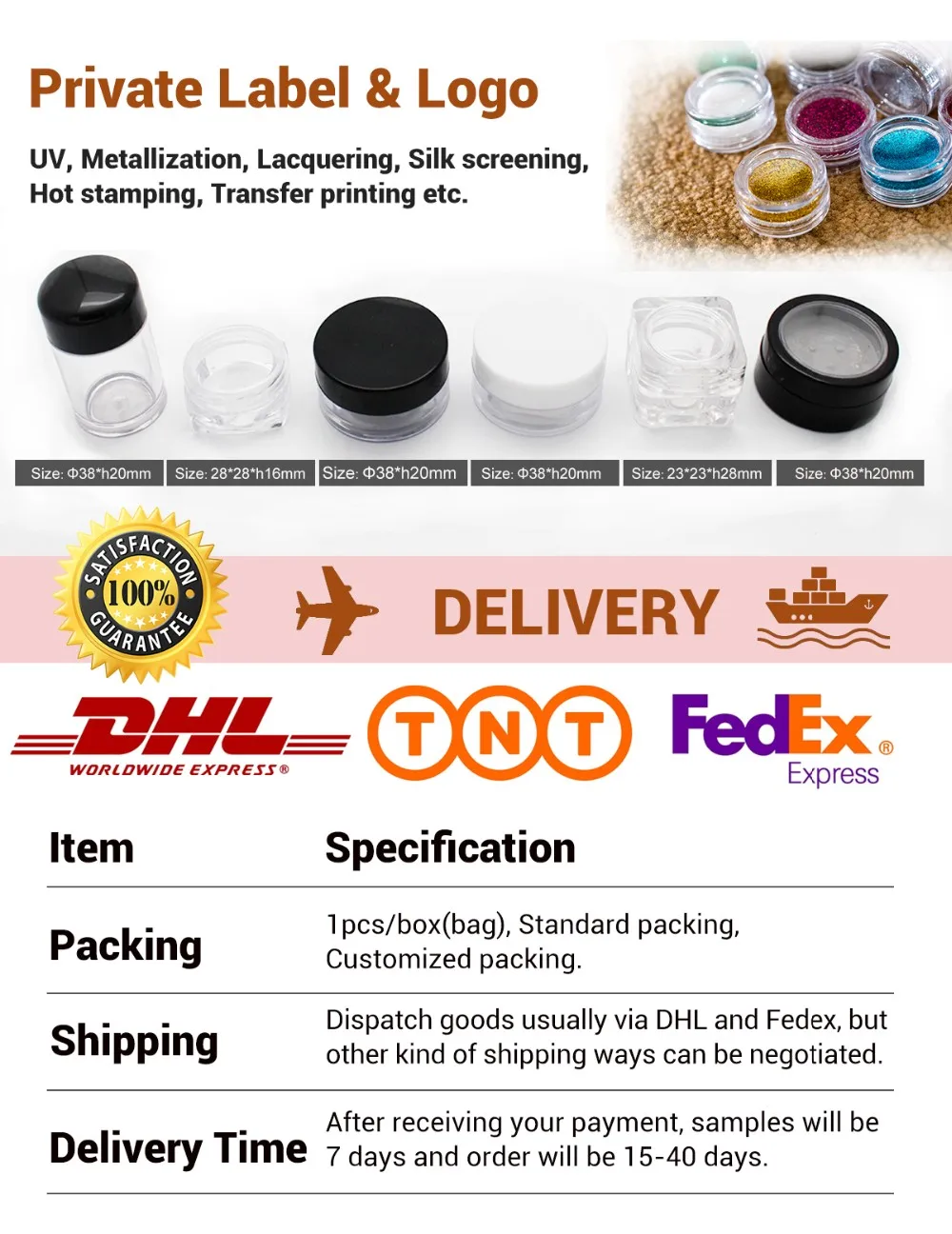 Shipping ways | Usually DHL and FEDEX, and other kind of shipping ways can be negotiated | ||||