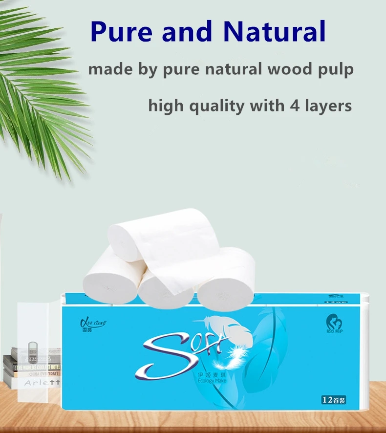 12 рулон туалетной бумаги/лот мягкая, нежная туалетная бумага рулон бумаги 4 слоя, кухня, ванная комната для очистки древесины быстро