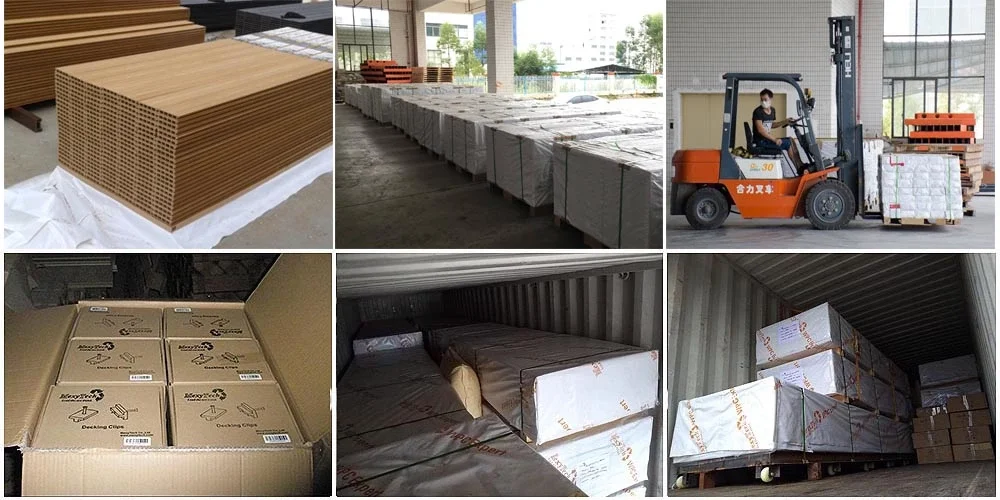 (c) Do surface treatment such as sanding or embossing,then cut the WPC decking by requested length before package.