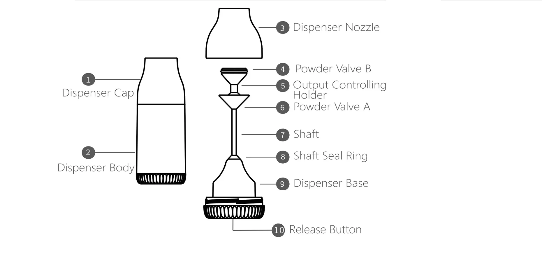 1.Снимите крышку дозатора, корпус, насадкуИВыходной контроль деталей.