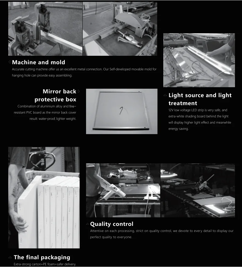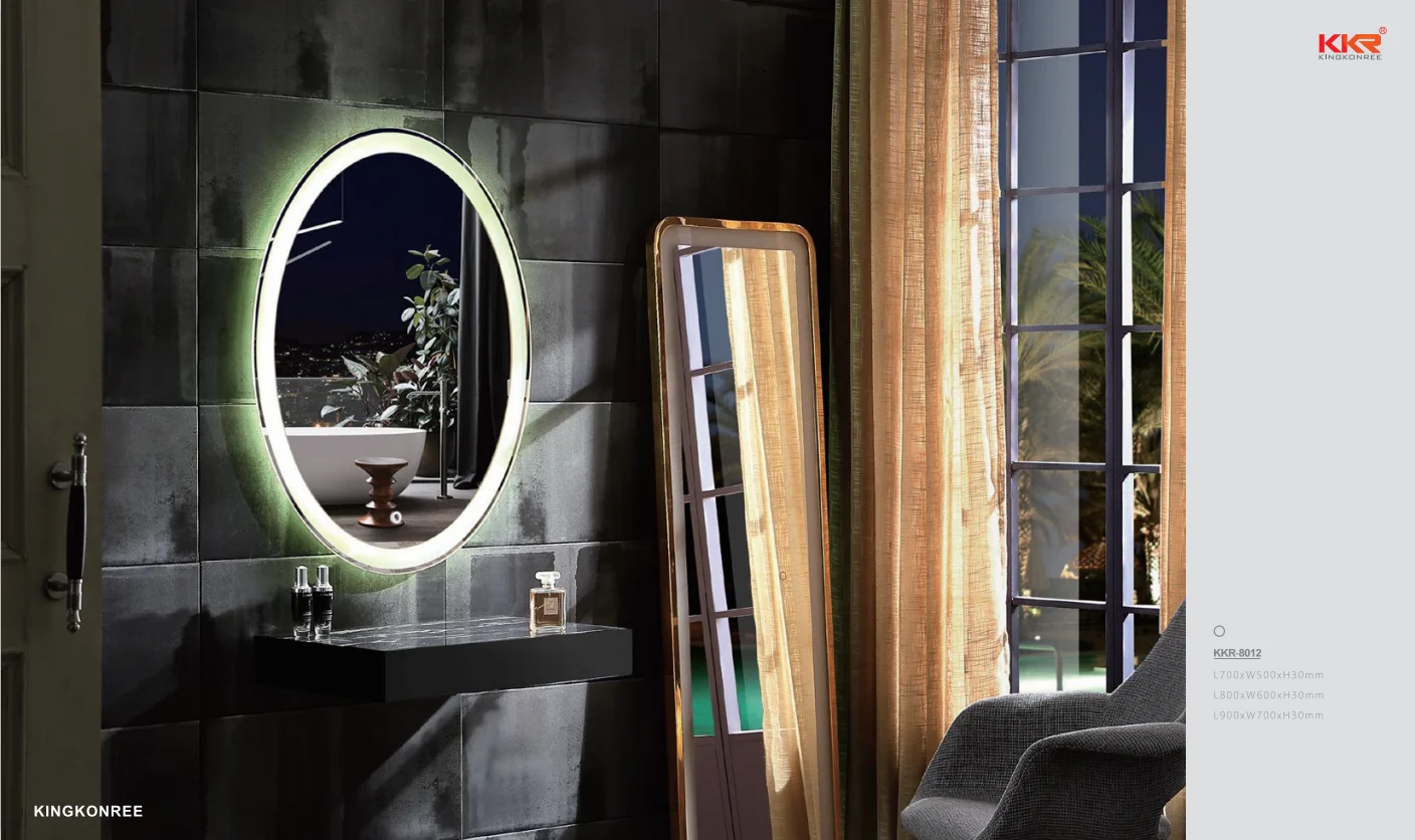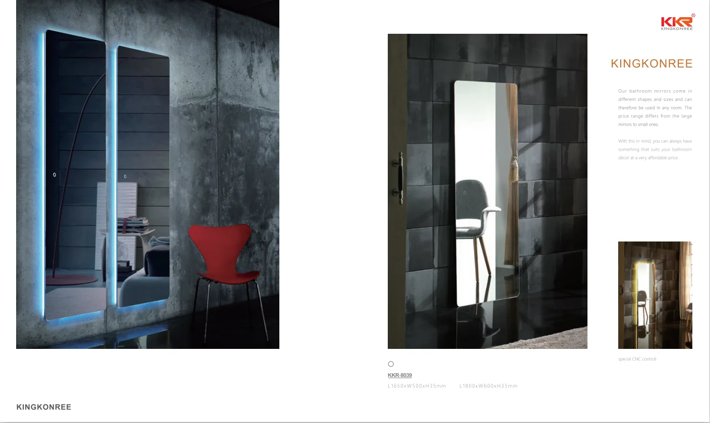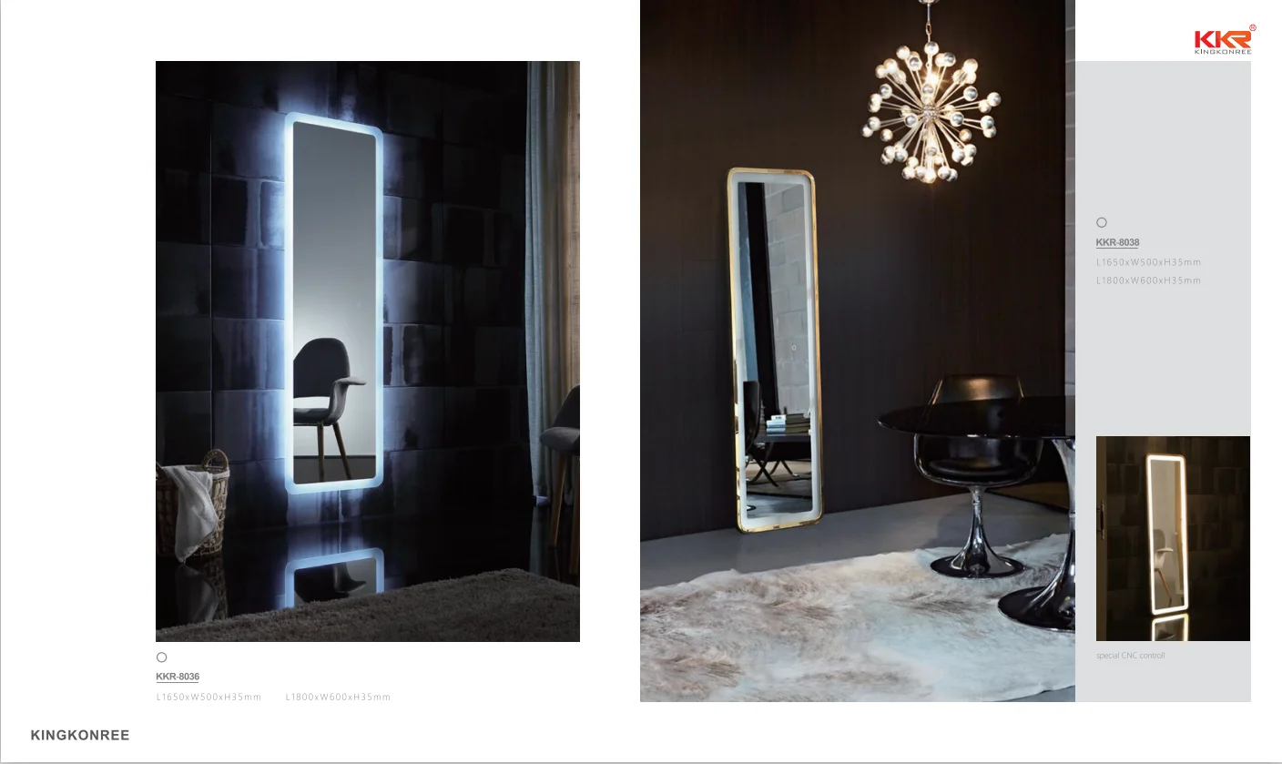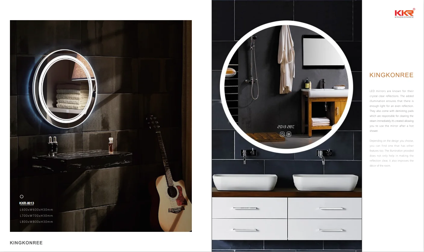 Our bathroom mirrors are customizable, including shape, size, function and more. Our bathroom mirrors can also be customized with bathtubs, wash basins and vanity.