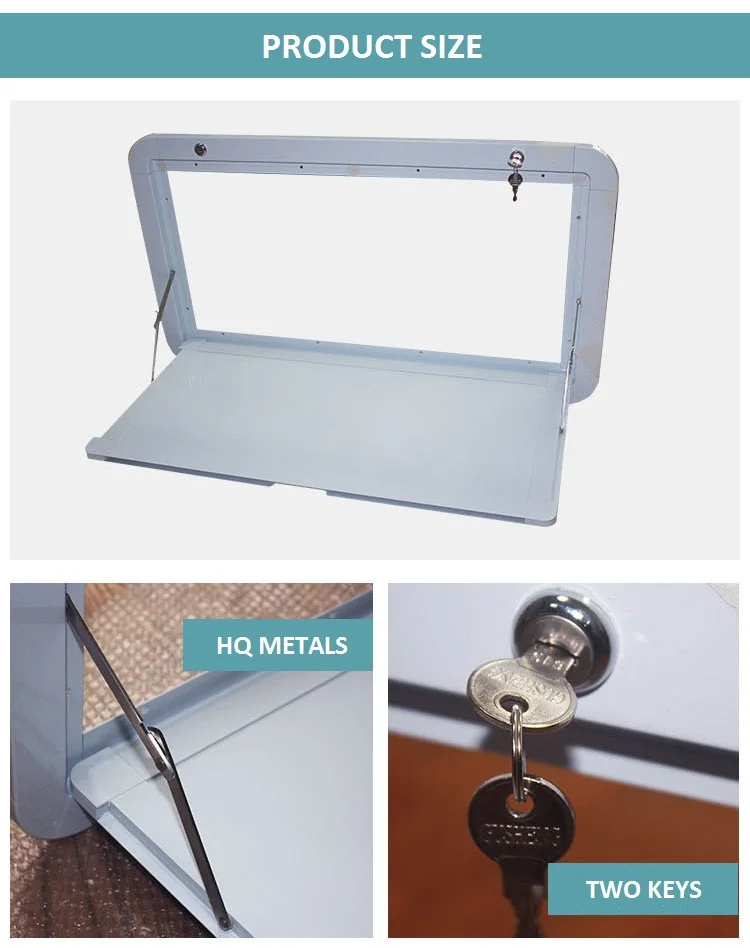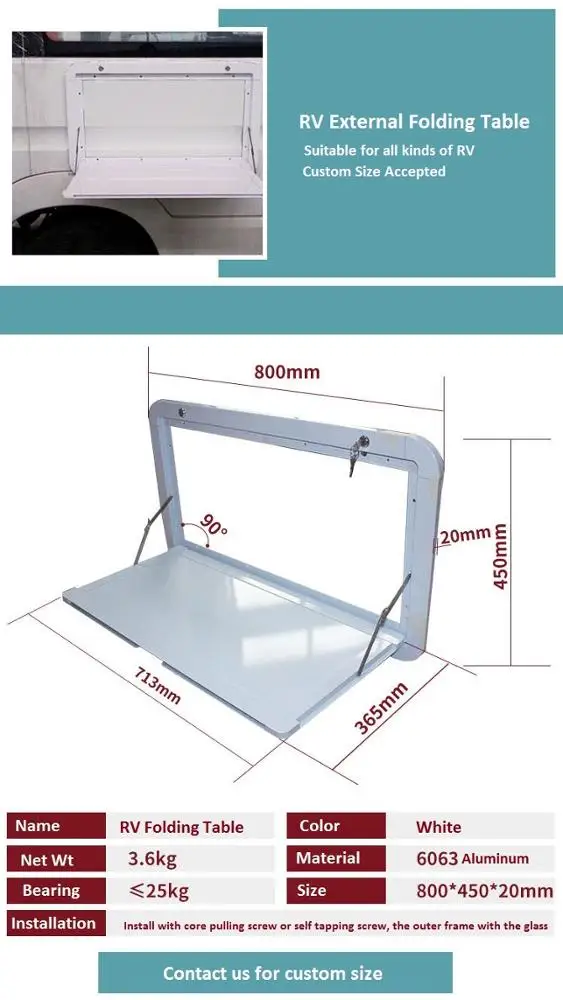 Compact folding table attaches to the outside and it does not need to cut a section.