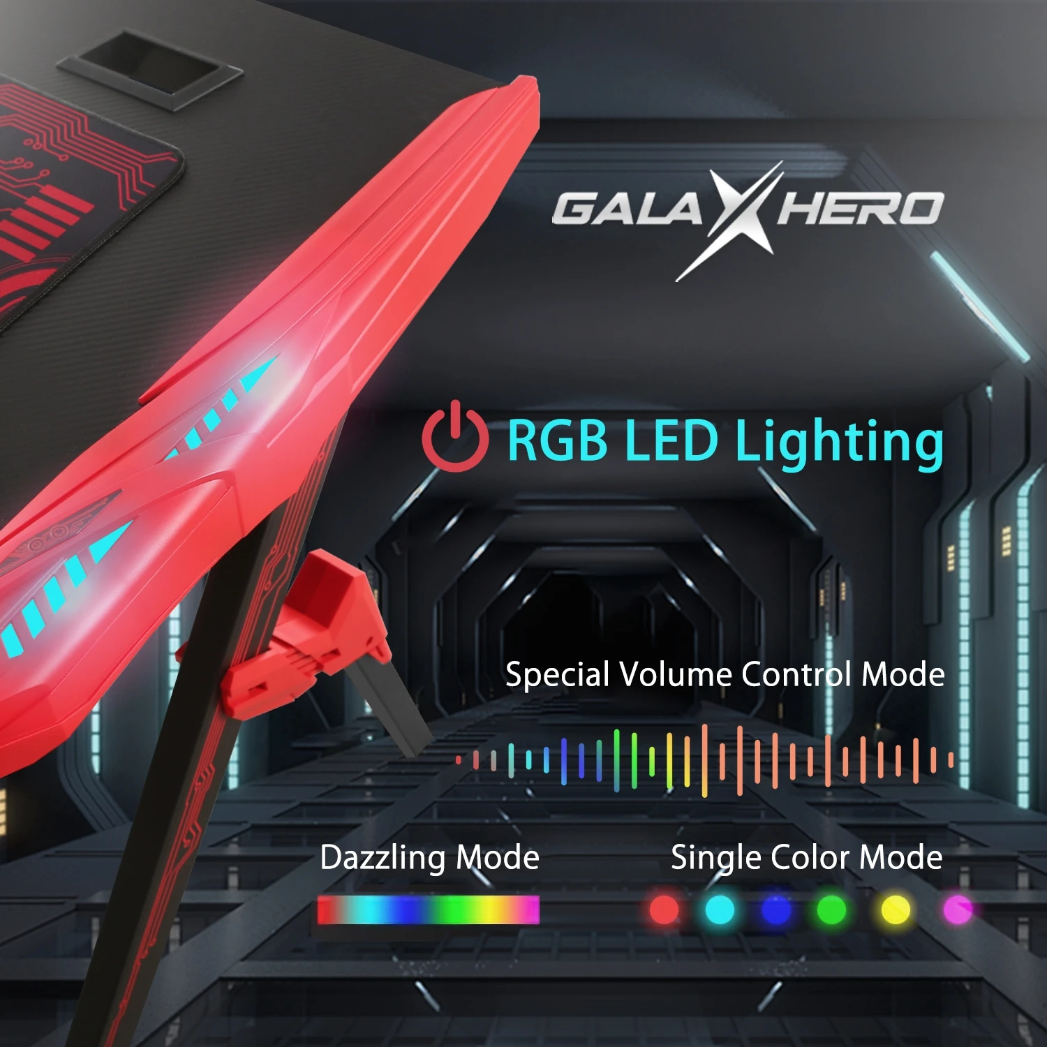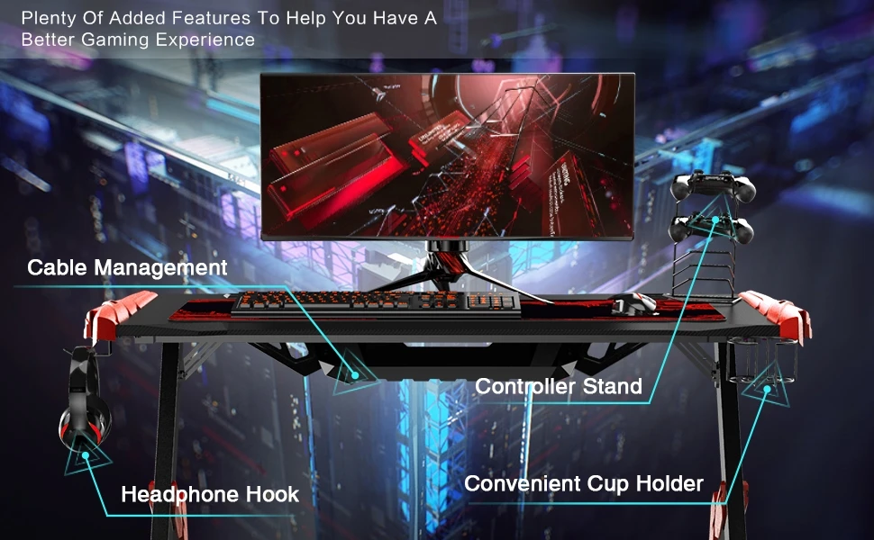 Options | Mouse pad, cup holder, earphone holder, bottom bracket ,game pad included |