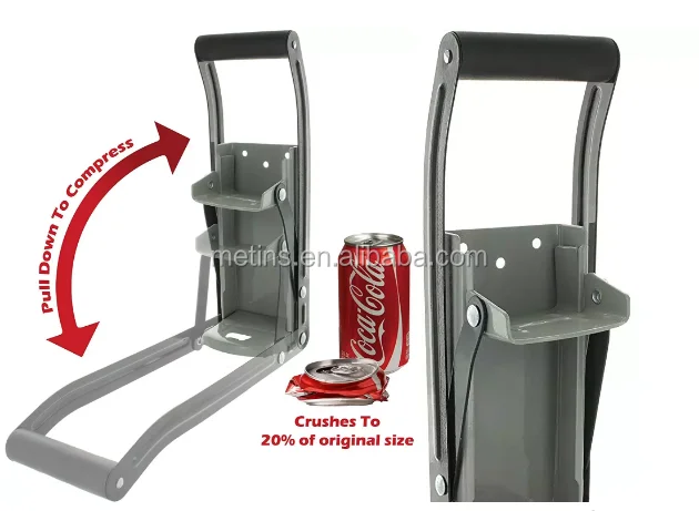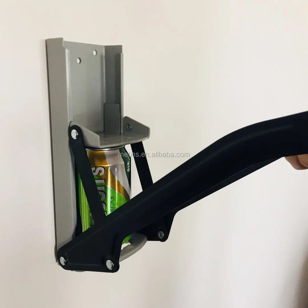 The Friendly 16 oz. manual can crusher and bottle opener is mountable on walls and tables to compact aluminumbeverages and soda cans, while also opening beer bottle caps.
