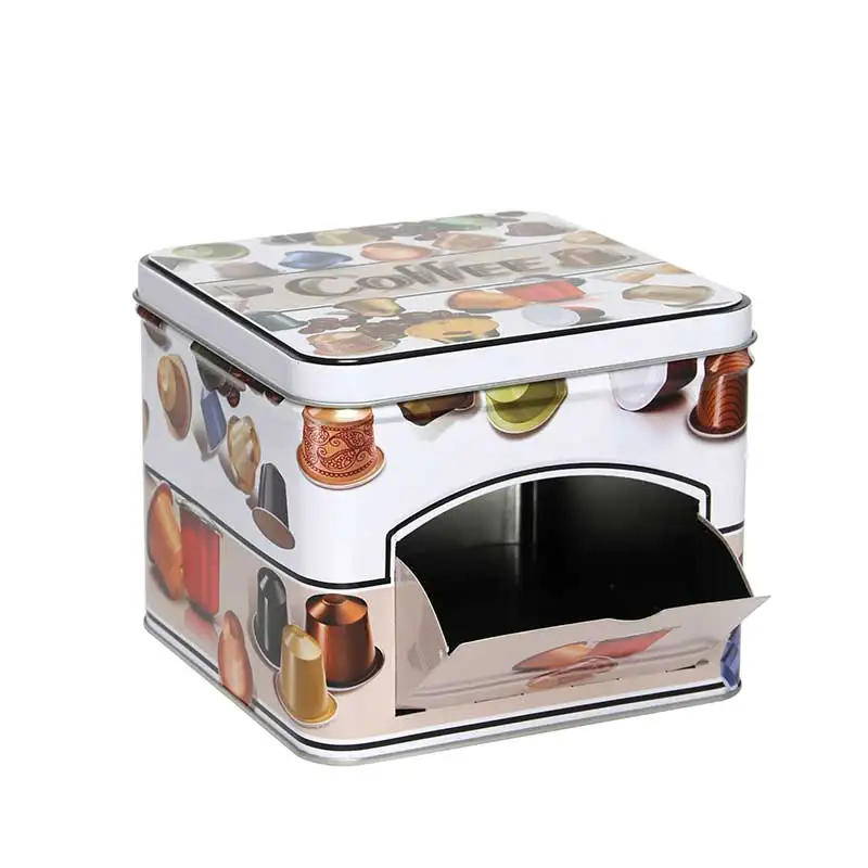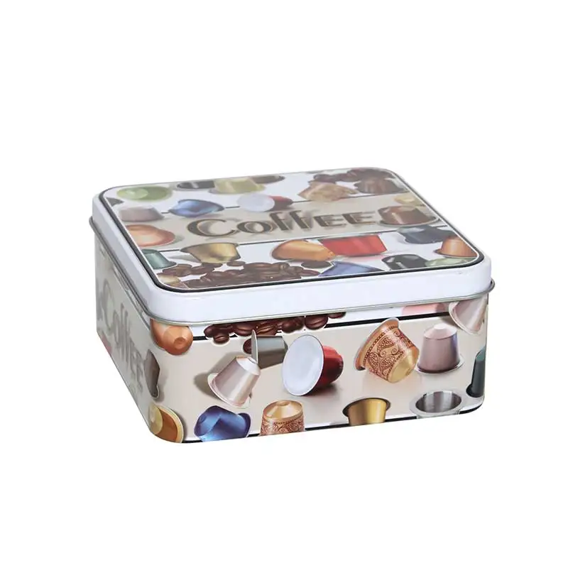 Высококачественная пищевая квадратная жестяная банка с дизайном в виде кофе и