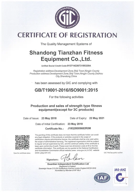 Shandong Tianzhan Fitness Equipment Co., Ltd. is a manufacturer of fitness equipment. Our company had passed the ISO9001:2008 Certificate and all of our equipments are commercial gym machines, approved with CE certificate. They are built to be innovative, functional, durable, and stylish. We are committed to promoting healthy, active lifestyles through our products, programs and services.