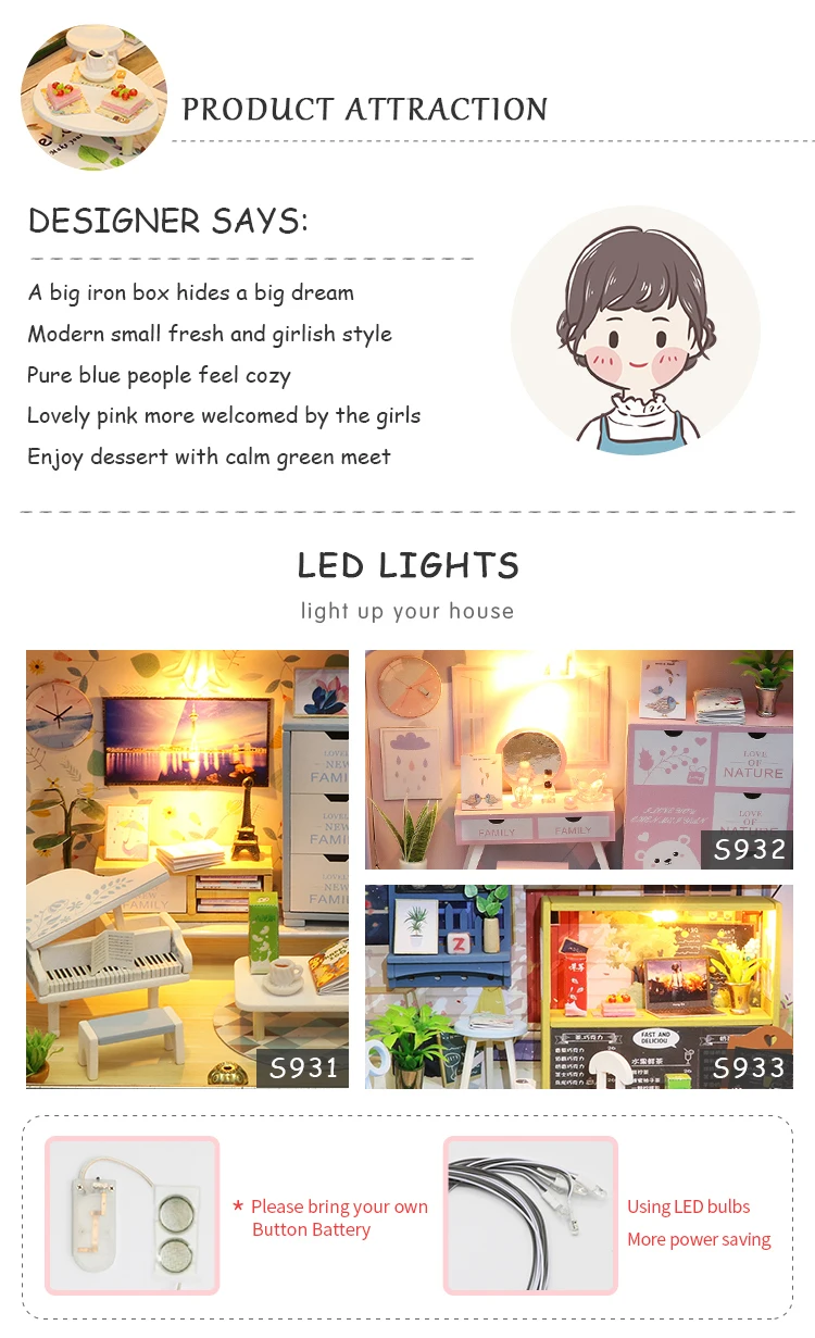 Our company specializes in Wooden DIY doll house.
