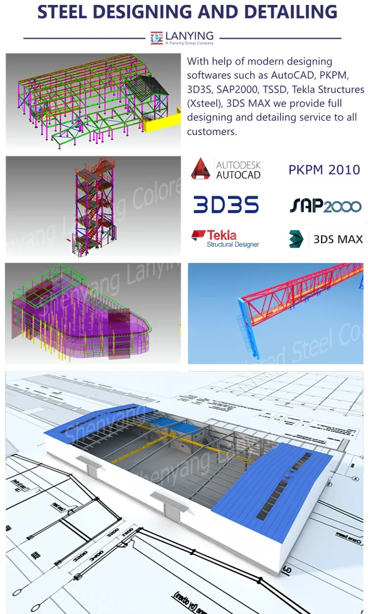 Yes, we could design full solution drawings as your requirements. By using AutoCAD, PKPM, MTS, 3D3S, Tarch, Tekla Structures (Xsteel) and etc. we can design complex industrial building like office mansion, super marker, auto dealer shop, shipping mall, 5 star hotel. Prefabricated new product steel warehouse / workshop / hangar / hall steel structure