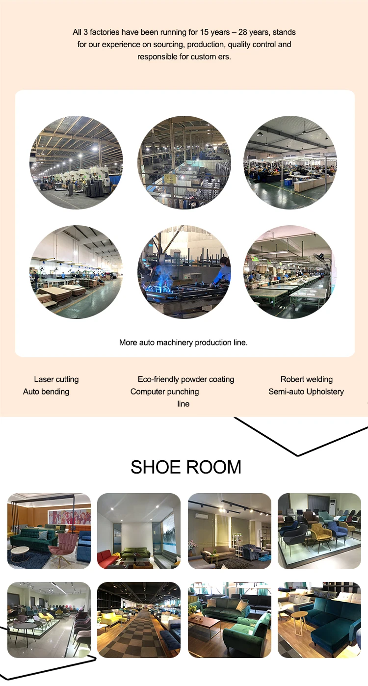 This is Foshan Relax in China, we specializes in the production of sofa beds, sofas, dining chairs, bar stools, metal chairs and upholstery chairs. We have 3 factories, one is specialized in chairs with 25 years’ experience, with 90,000m2 workshop and 200,000 pcs capacity per month. Another factory is specialized in sofa beds with 15 years’ experience, 20,000m2 workshop, and 10,000 pcs capacity per month. Another is specialized in futons, electric beds for 26 years, 60,000m2 workshop, and 50,000 pcs capacity per month.
