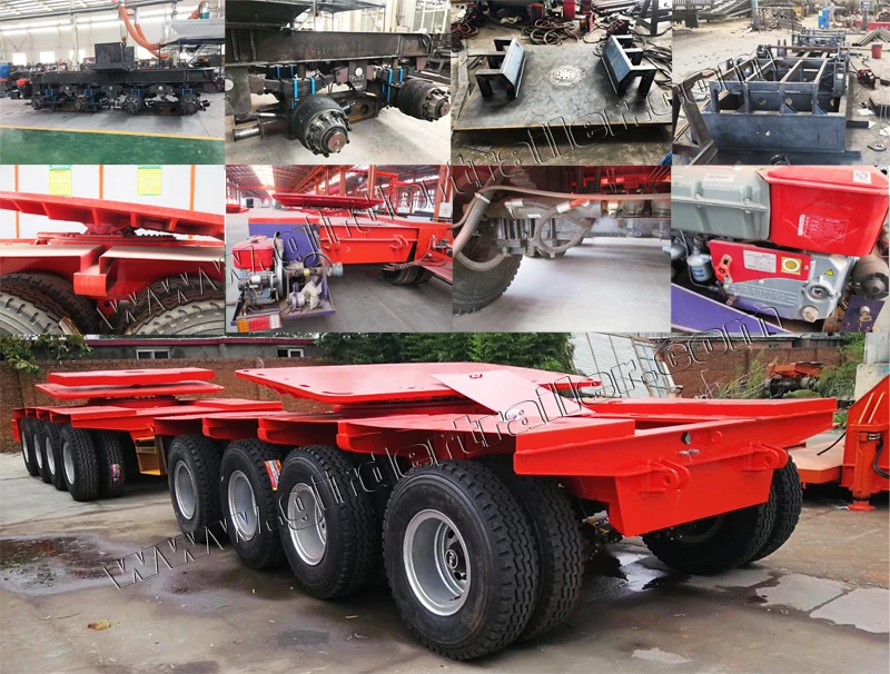 2.The trailer set has two parts: the front one should be towed by a prime mover or self-propelled. Rear part is like a steering dolly, could be equipped with a small diesel engine to realize manually steering.